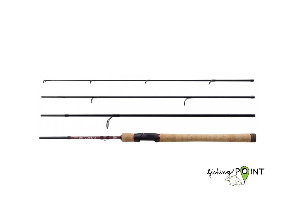 Slavná řada DIPLOMAT znamená mobilitu a cestování. Tyto přívlačové pruty mají velmi krátkou přepravní délku díky jejich 4 nebo 5-ti dílné konstrukci blanku, přitom se chová jako běžný 2dílný prut! Ideální pruty, které si vezmete s sebou na dovolenou nebo je budete mít vzadu v autě – vždy připravené k rybaření! Řada obsahuje řadu různých délek a vrhacích zátěží, takže jste vždy připraveni na různé techniky, druhy a situace, které mohou nastat. Pruty jsou dodávány se silným cestovním pouzdrem.Doplňkové parametry