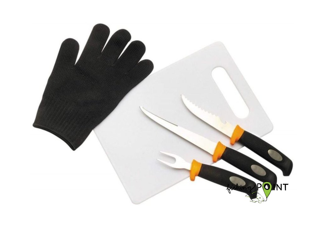 Sada obsahuje 2 kvalitní filetovací nože z nerezové oceli a střenkami z ABS materiálu, vidličku, plastové prkénko a rukavici odolnou proti proříznutí.Doplňkové parametry