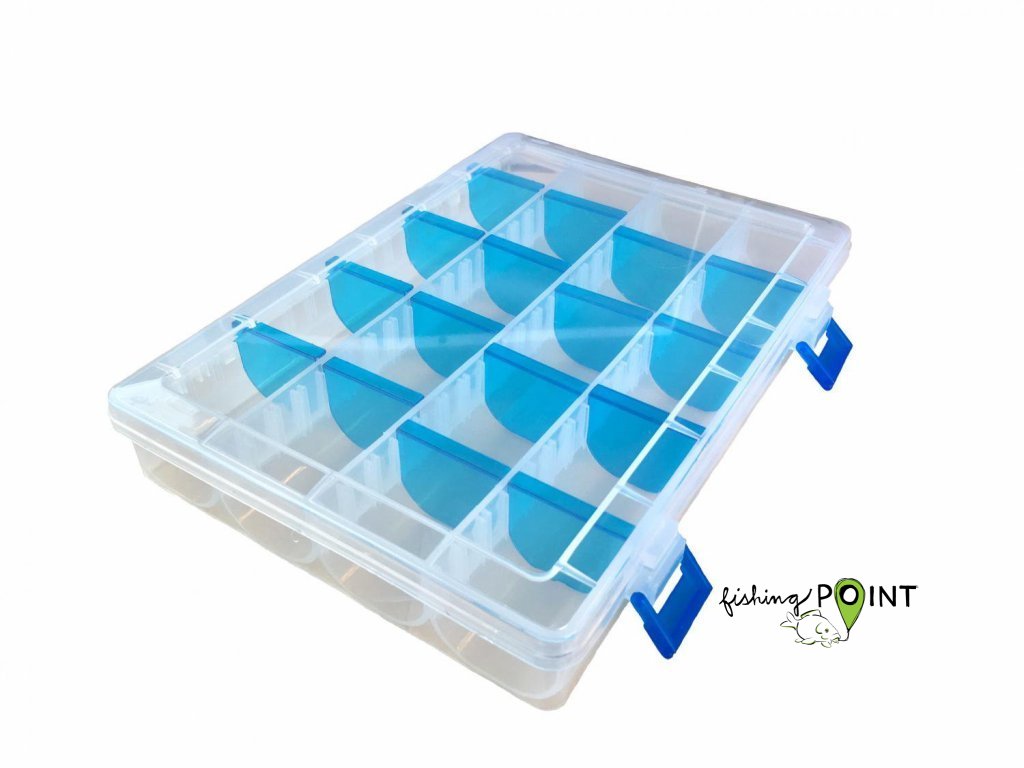 Plastová krabička na drobnosti s 16-ti volitelnými přepážkami a 4 pevnými. Parametry: Vnější rozměry (š x v x h): 25 x 4 x 19,5 cm Vnitřní rozměry (š x v x h): 24 x 3,3 x 17 cm Vnitřní rozměr komory (š x v x h): 24 x 3,3 x 4 cm Barva: TransparentníDoplňkové parametry