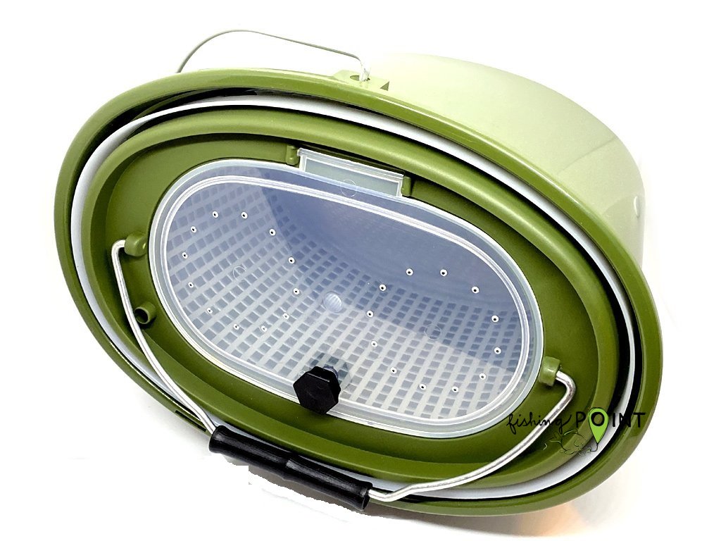 Dvoudílná oválná 5L řízkovnice z nárazuodolného polypropylenu. Obě nádoby mají pevné kovové držadlo, otvor na hadičku vzduchovacího motorku a víko se zámkem a odvětrávacími otvory. Víko vnitřní nádoby je tvarováno tak, aby se minimalizovala ztráta vody při transportu.Rozměry: 30 x 20 x 20 cmDoplňkové parametry
