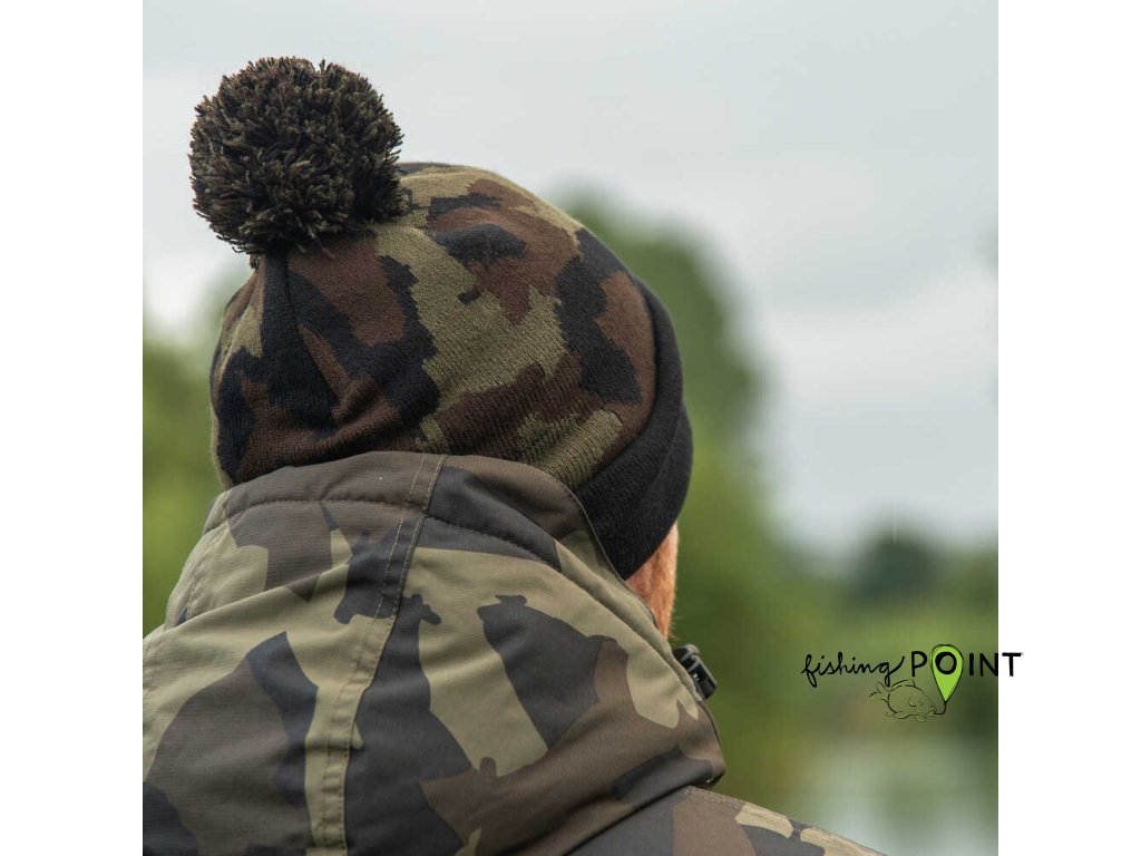 Avid Carp Čepice Black And Camo Bobble Hat