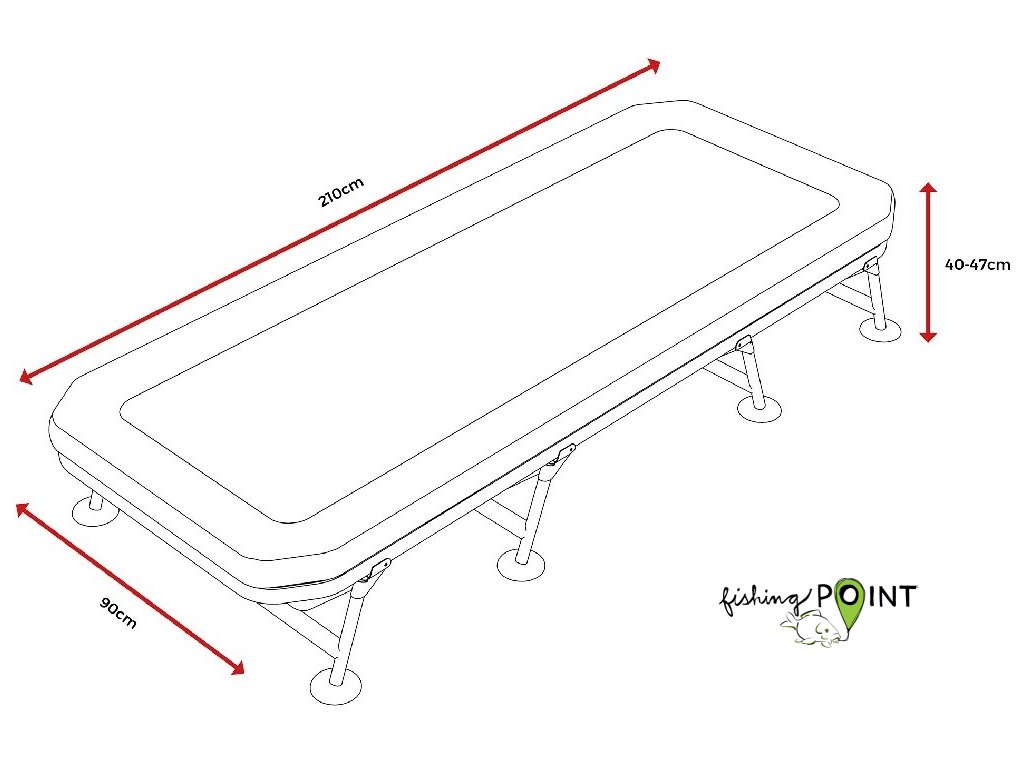 Systém popruhů a přezek umožňuje kompaktní sbalení postele i se spacím pytlem.Hmotnost: 12.8kgsRozměry: 210 x 90 x 40cmVýška: Minimum: 40cm Maximum: 47cmSložené: 90 x 80 x 25cmHlavní vnější tkanina: 100% polyester, výplň: 100% polyuretan