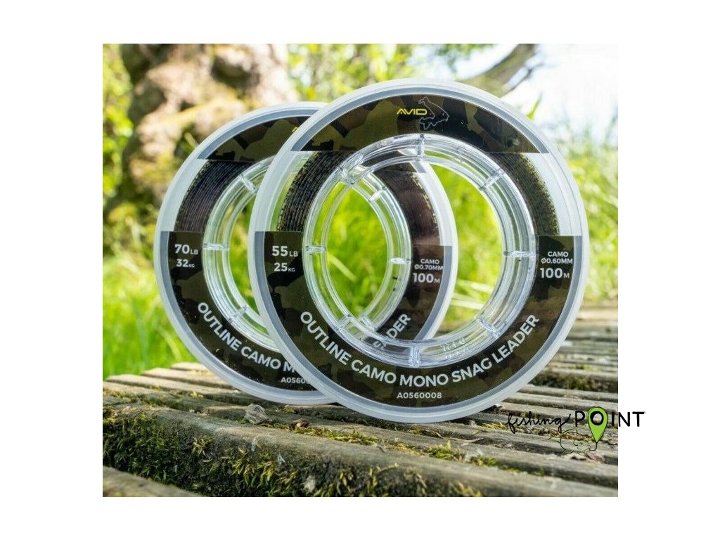 Avid Carp Šokový Vlasec Outline Camo Mono Snag Leader 100m 0,70mm/32kg