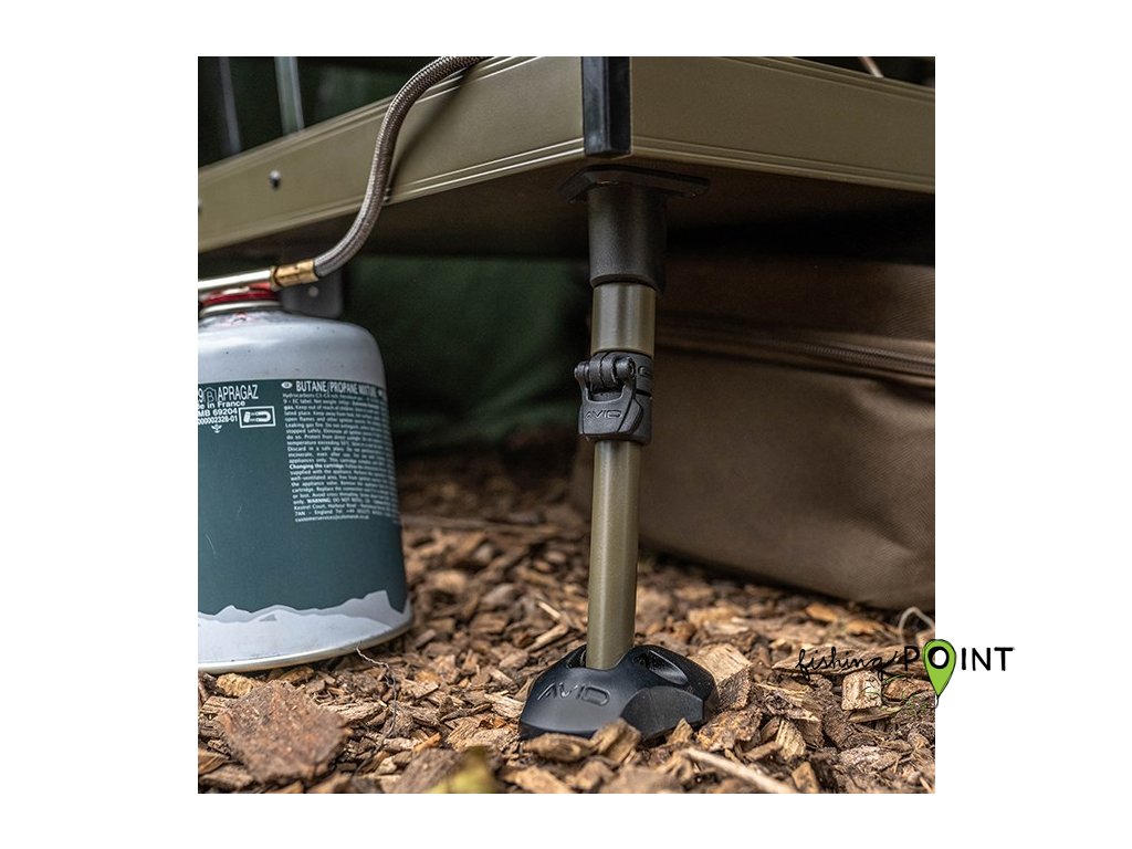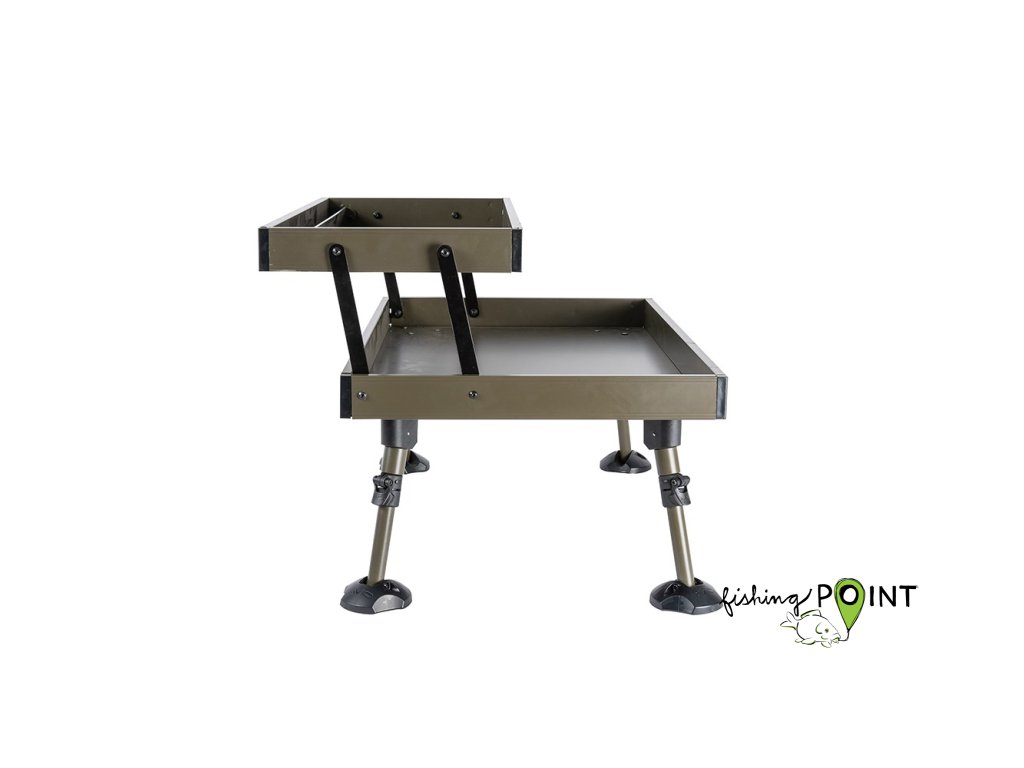 Bivvy stolek má plně nastavitelné LokDown nohy, což umožňuje stolek postavit do ideální roviny i na svažitém břehu. Stolek je snadno složitelný do kompaktní velikosti, aby jej bylo jednoduché přepravovat na vozíku i v autě.