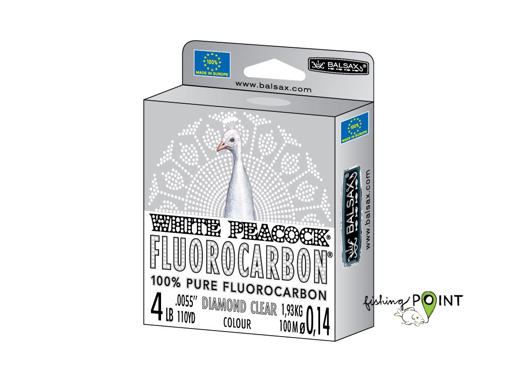 100 % Fluorocarbon White Peacock je neviditelný ve vodě - má zhruba stejný index lomu světla jako voda, proto propouští UV záření. Neabsorbuje vlhkost a ani po 100 hodinách neztrácí pevnost. Rychle se potápí, má vysokou odolnost proti oděru a proti extrémním teplotám. Balení: 50m v krabičce.