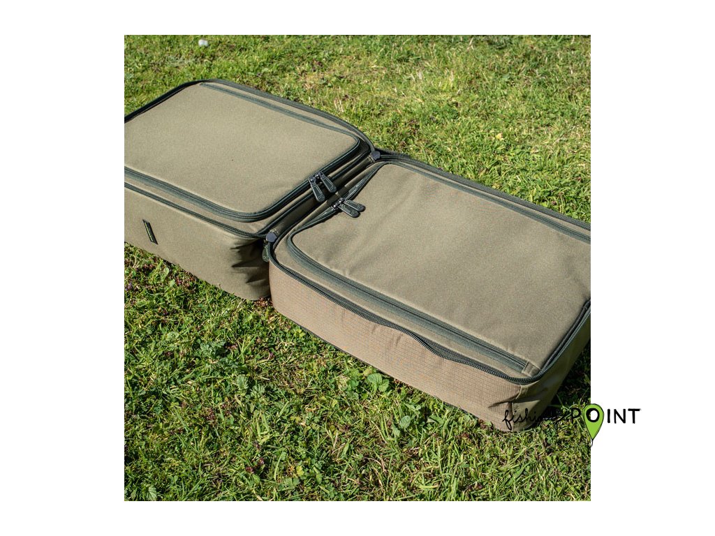 Taška Transition Fold-A-Sack je skvělá pro rybáře, kteří chtějí tašku s nižším profilem, která poskytuje mělčí přihrádky a snadnější přístup ke všemu vašemu vybavení. Další výhodou jedinečného skládacího designu je to, že se nepřevrhne na nakloněných březích a také se úhledně vejde pod vaše lehátko. Na horní straně tašky jsou dvě poutka na suchý zip pro uložení věcí, jako jsou skládací sítě a vydličky, poutka ve tvaru D určená pro připevnění karabinou a naše nové pouzdro Transition, které funguje ve spojení se všemi novými podložkami Transition.