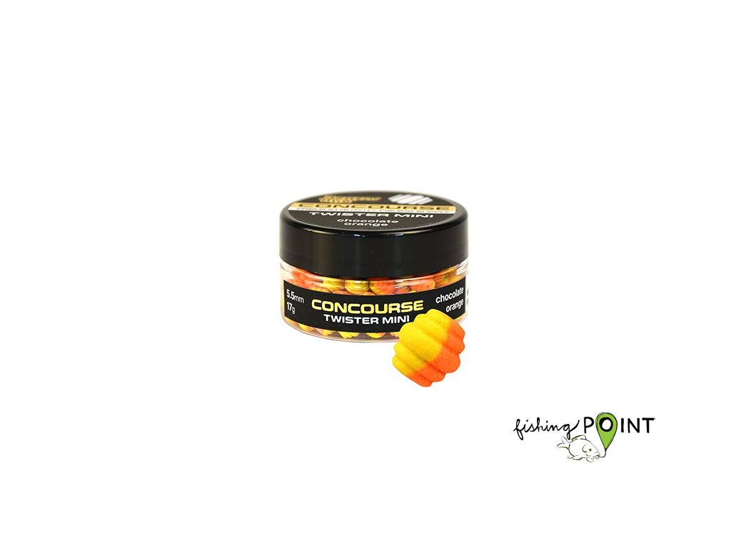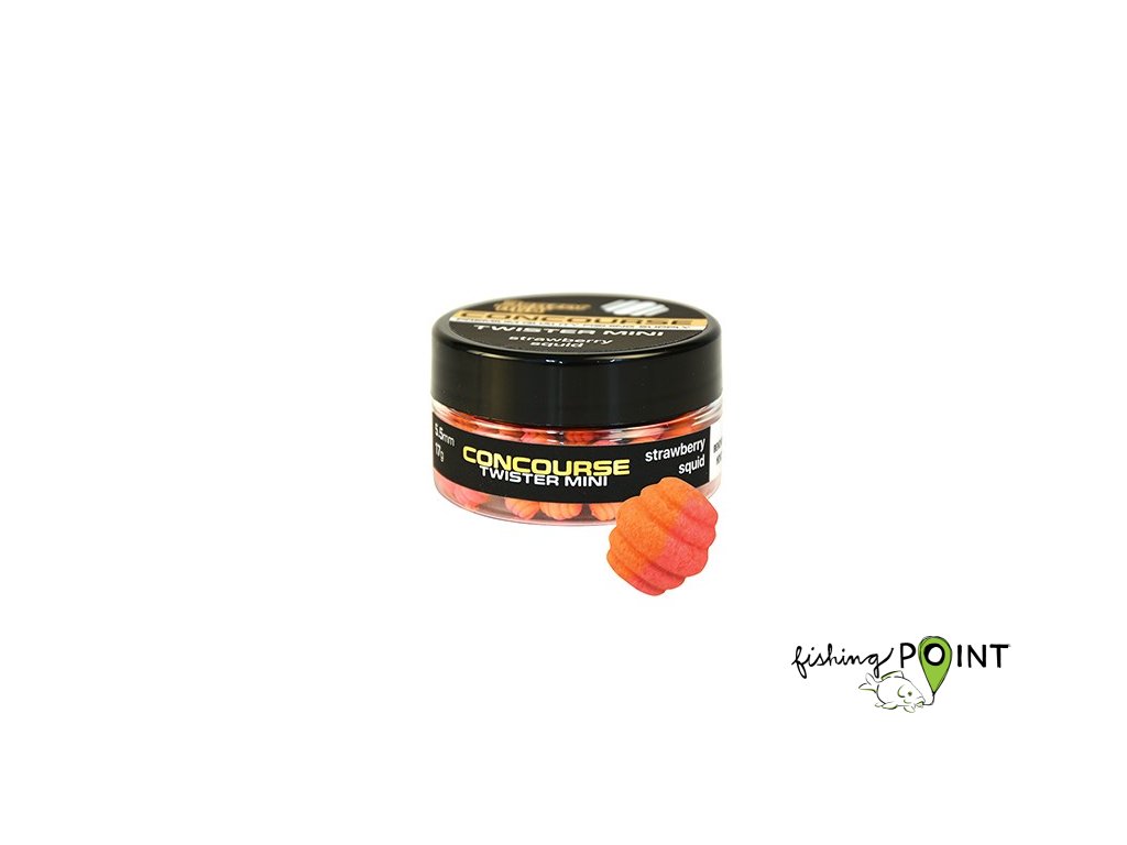 Nástrahy Concourse Twister díky svému symetrickému kruhovému tvaru představují pro ryby naprosto neznámý svět tvarů, který nabízí řadu variací. A kouzlo novinky, jak všichni víme, spočívá v dramatickém nárůstu úlovků! Nástrahy jsou z výroby dlouhé 10 mm a dodávají se ve dvoubarevném provedení ve velmi výrazných, chytlavých a oblíbených příchutích čokoláda-pomeranč, moruša, mango, rybí moučka, sýr-kyselina máslová, jahoda-sépie, česnek-mandle a krill.