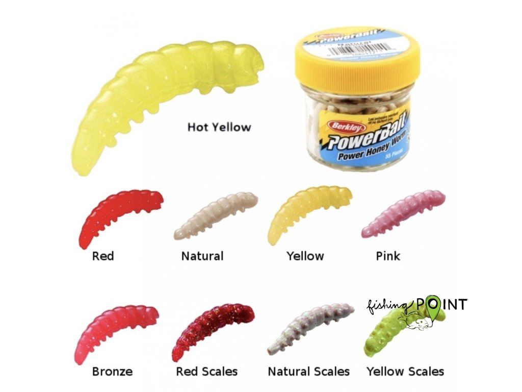 PowerBait Honey Worms je přesná napodobenina vosí larvy vhodná díky své velikosti na větší exempláře.Aromatizované nástrahy obsahující v sobě patentovaný PowerBait atraktant, jehož vůně láká ryby i z větších vzdáleností a jeho chuť způsobuje, že ryba nástrahu považuje za živou a tudíž se ji nebojí okamžitě pozřít nebo držet v tlamě 18x déle než běžnou umělou nástrahu. Dohromady s realistickým tvarem a pohybem dokonale imituje živou nástrahu.Velikost: 2,5cmPočet ks v balení: 55ksDoplňkové parametry