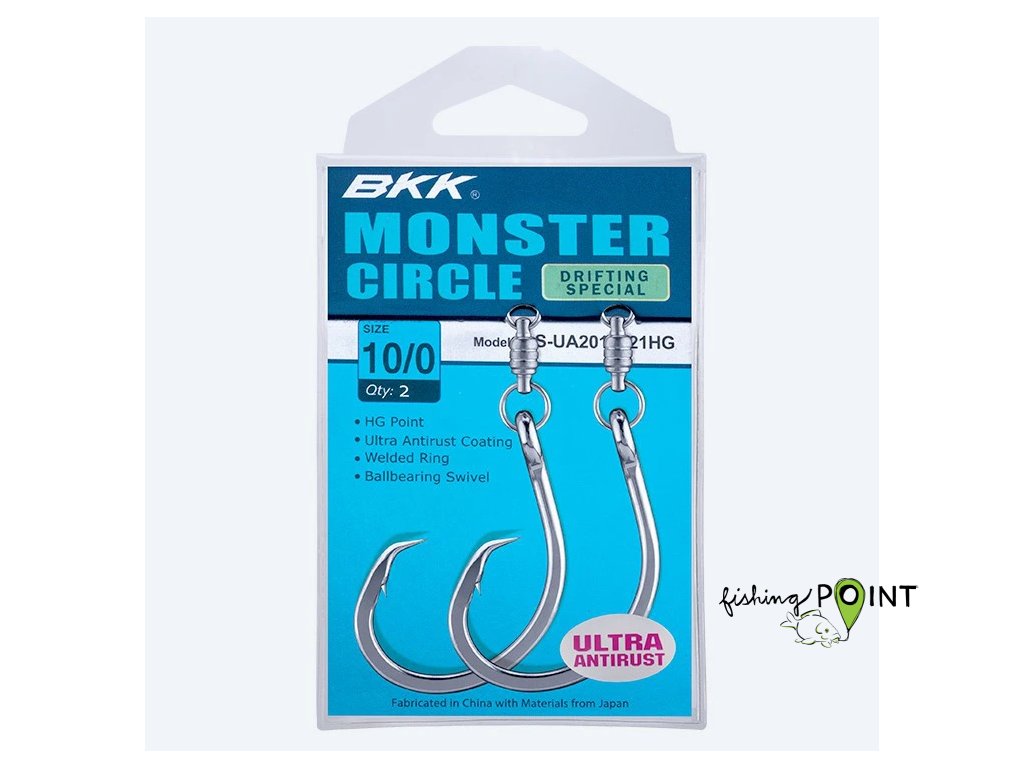 Háček BKK Monster Circle Drifting Special je speciálně vyvinutý pro lov těch největších a nejsilnějších ryb v oceánu. Háček je navržen s rovným očkem a in-line hrotem, díky čemuž je velmi všestranný a lze s ním lovit různé druhy mořských ryb, jako jsou tuňáci a žraloci. Při driftování absorbují nerezová kuličková ložiska s ultra hladkou dvojitou rotací všechny torzní síly a zabraňují zamotání. Ručně broušený hrot háčku poskytuje vynikající sílu při zasekávání a zároveň minimalizuje odpor při propíchnutí, čímž zvyšuje poměr zaseknutí.Doplňkové parametry