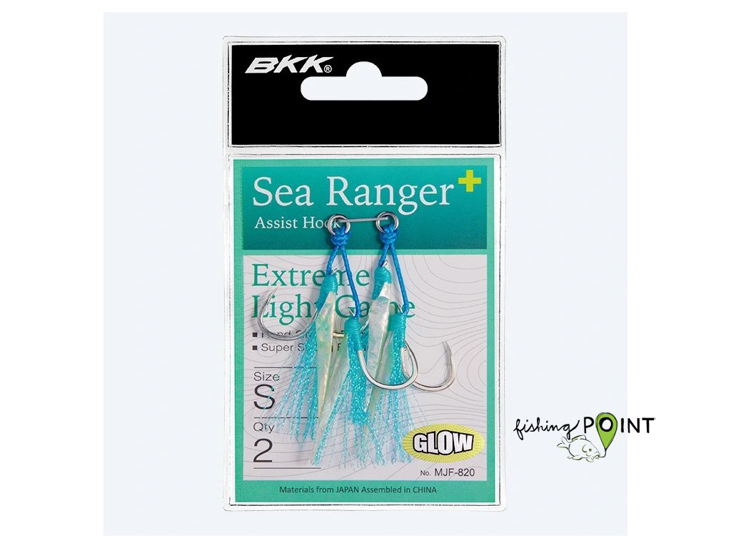 BKK Sea Ranger+ byl vyvinut pro lov velkých ryb s malou nástrahou. Je dodáván s předvázanou vysoce kvalitní pomocnou šňůrkou BKK s pevným jádrem, která je velmi pevná, ale přesto si zachovává svou měkkost. Třpytivá a svítící vlákna zvyšují atraktivitu jigu a vyvolávají více záběrů. Je vybaven silným průvlekem, který zajišťuje vynikající pevnost háčku, a technologií BKK Hand Ground, která odlehčuje háček a zajišťuje vynikající průraznost. Navíc funkce U-spade Slip Lock udržuje asistenční šňůru bezpečně na místě. V neposlední řadě zajišťuje potah z lesklého cínu ostrost háčků v prostředí slané vody a zabraňuje tak korozi v mořské vodě.Doplňkové parametry
