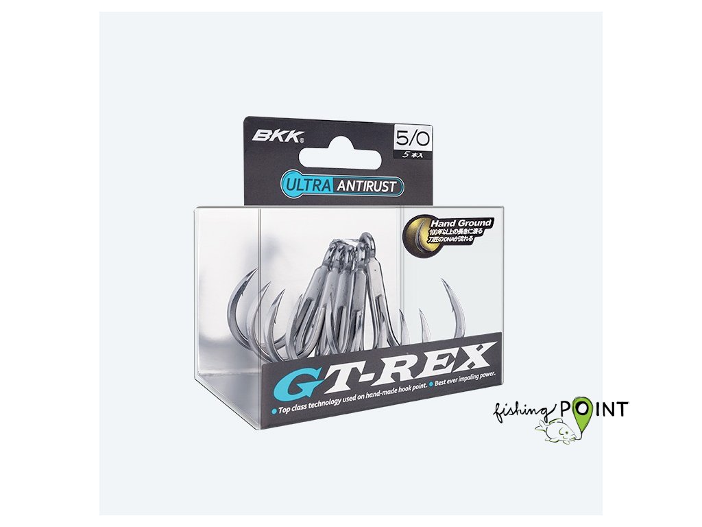Trojháček BKK GT-REX byl původně vyvinut na chytání obrovských tuňáků a kranasů. Má Hand Ground hrot háčku a unikátní BKK potažení háčku Ultra-Antirust Coating, což zaručuje, že drží ostrost a výborně proniká do tlamy dravce. Všechny detaily GT-REX trojháčku od očka po hrot byly navrženy tak, že byl vytvořen nejlepší háček nejenom na popování v teplých mořích. GT-REX obdržel cenu Good Design Award 2019.Doplňkové parametry