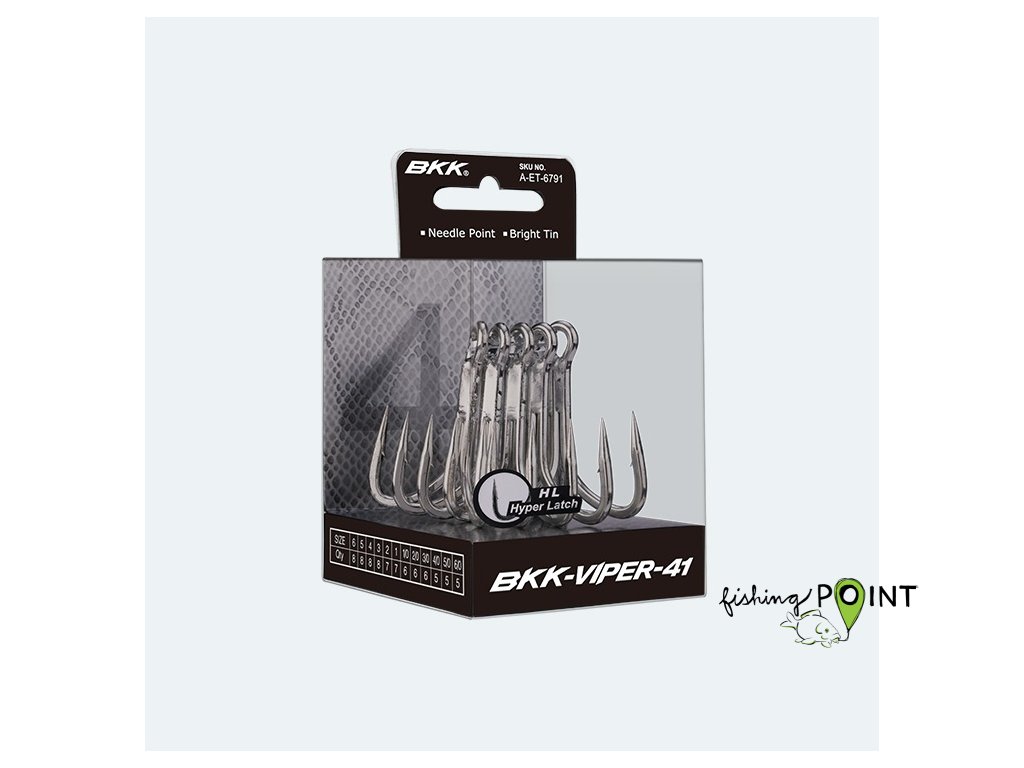Viper-41 je silný a lesklý trojháček o síle 4x vyrobený se silným a rovným hrotem ostrým jako jehla. Má velmi agresivní ohyb a byl navržen nejenom pro chytání s povrchovými nástrahami. Aby se snížila hmotnost háčku a zároveň háček mohl zůstávat co nejblíže k nástraze, došlo ke zmenšení jeho sváru. Hrot háčku je navržen tak, aby maximalizoval jeho schopnost záseku. Agresivní ohyb háčku zajišťuje, že se ryba ani při výskoku háčku jen tak nezbaví. Viper-41 je potažen lesklým cínem, aby dobře odolával i ve slané vodě. Je vyráběn ve velkém množství velikostí od 6 až do 6/0 tak, aby se hodil na rozdílné nástrahy od malých rotaček až po velké mořské poppy.Doplňkové parametry