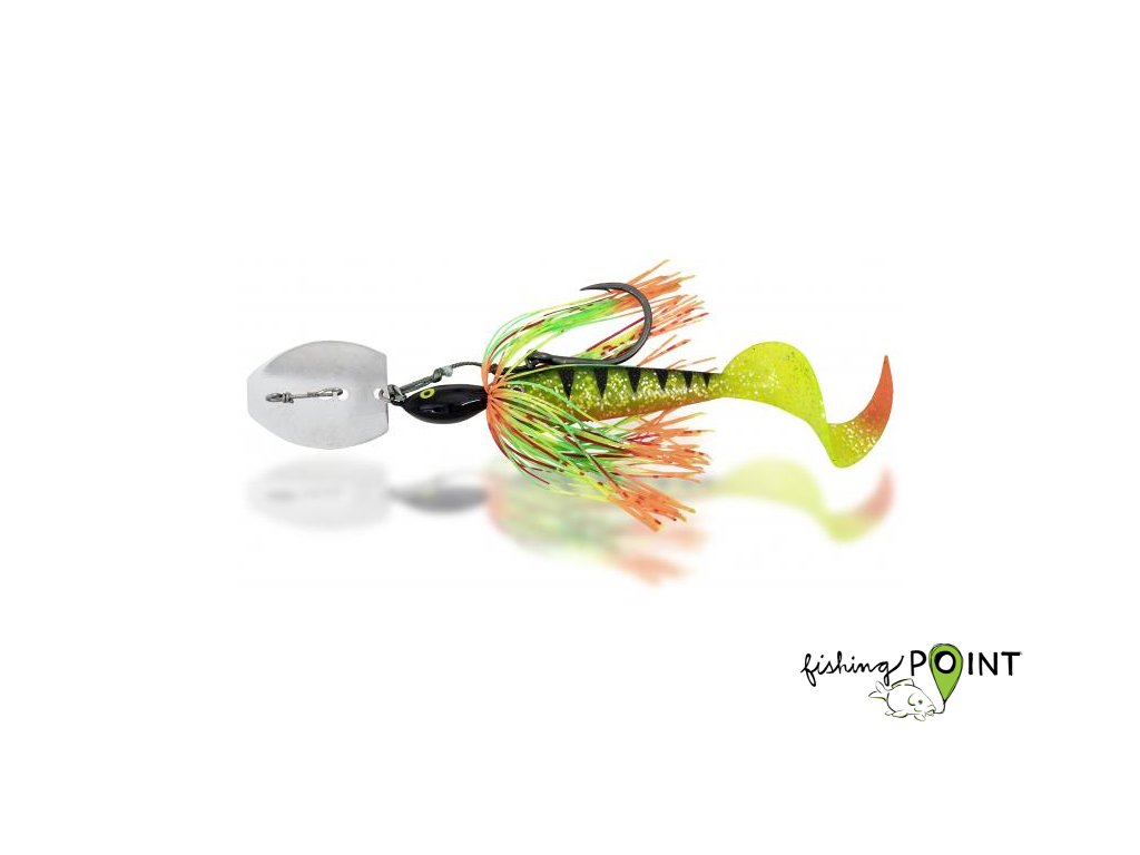 Chatter z kolekce značky Black Cat se nejvíce hodí na mělké a zarostlé revíry. Díky svému naddimenzovanému plíšku dokáže vytvořit masivní tlakové vlny, které mají pod vodou značný dosah a netečné sumce probudí z letargie. Kvalita zpracování je na velmi vysoké úrovni a dostupná paleta dráždivých barev nabídne pro většinu případů a světelných podmínek u vody ten správný vzor. Jako háček používáme Claw Hook z naší produktové řady, který lze co nejagresivněji zafixovat na libovolně zvoleném místě přívěsu. Zabudovaný šroub umožňuje optimální oporu jakékoliv gumové nástraze.