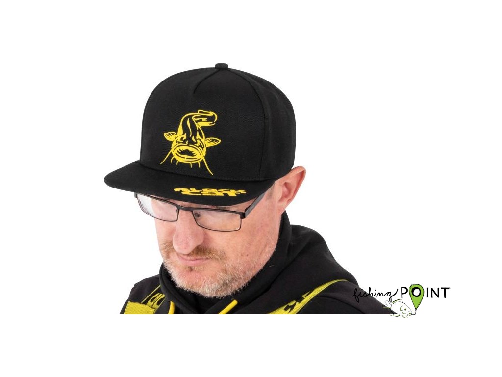 Černá kšiltovka Black Cat s plochým kšiltem.Jedna velikost padnoucí všem