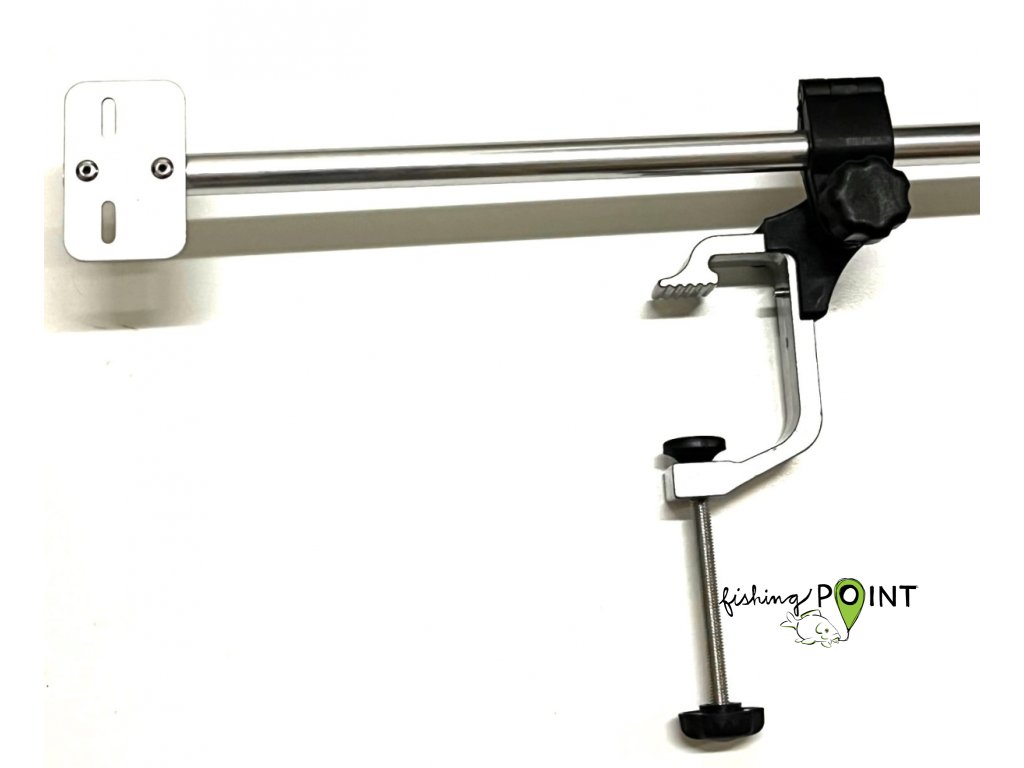 Výklopný držák echolotu s držákem sondy vhodný na nafukovací čluny i laminátové lodě.Délka je 80 cm. Maximální šířka boku lodě můsí být do 7 cm kvůli uchycení držáku.