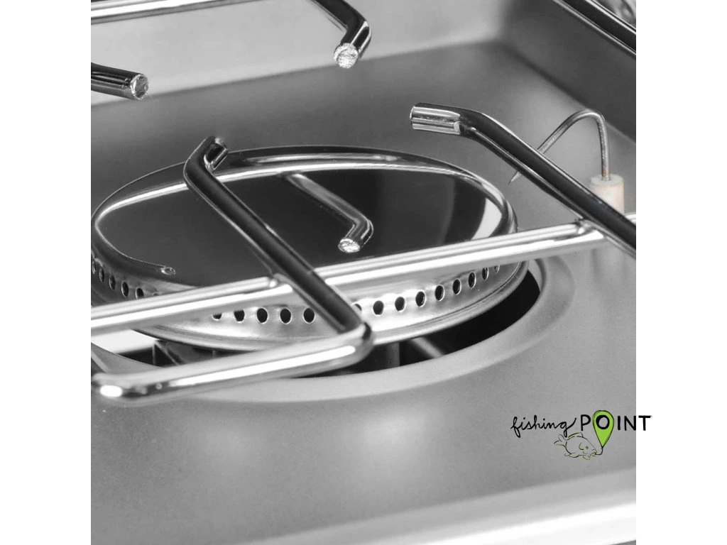Dva hořáky: Horní část tvoří robustní dvouplotýnkový vařič s individuální regulací pro rychlé smažení, vaření i ohřívání.