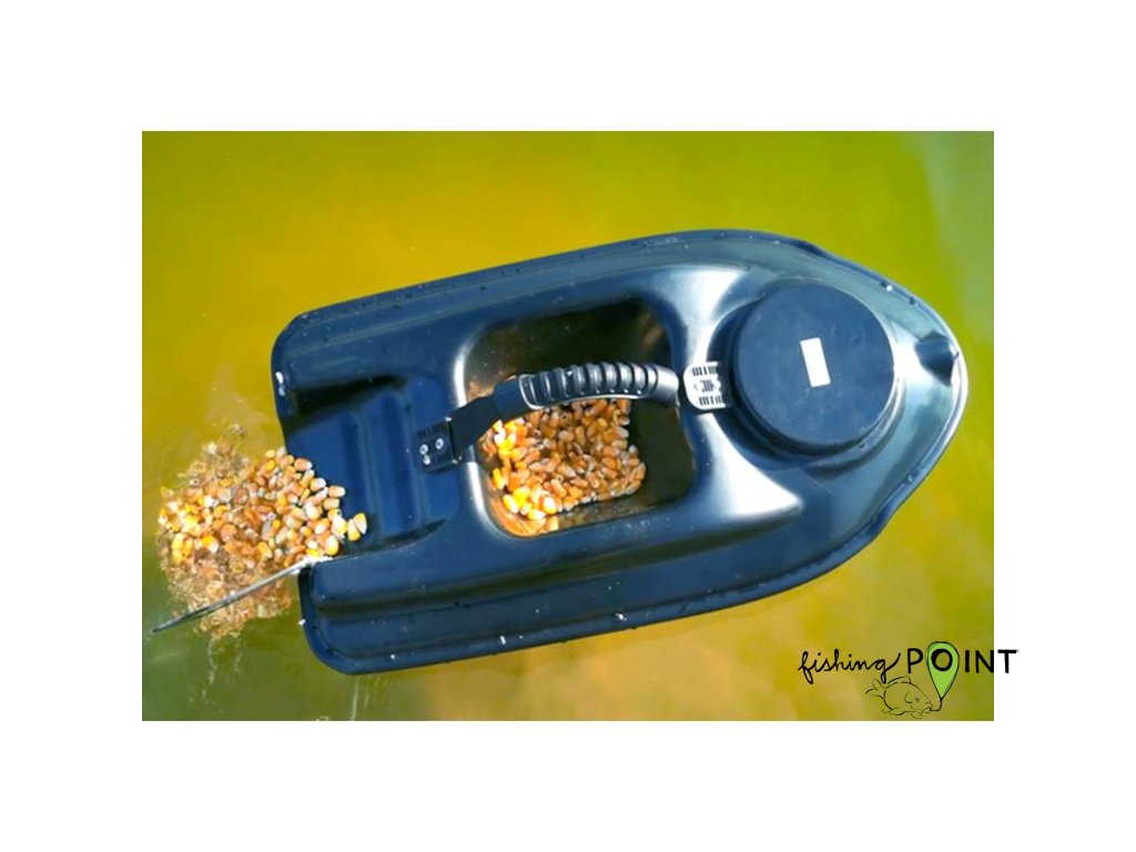Návnadové komoryActor má uprostřed lodi velké komory, do kterých se vejde přibližně 1000 g suché návnady. Zadní přihrádka pojme 500 g. Stiskneme uvolňovací tlačítko na dálkovém ovladači a klapka se otevře, v případě potřeby současně uvolníme vlasec a návnadu.
