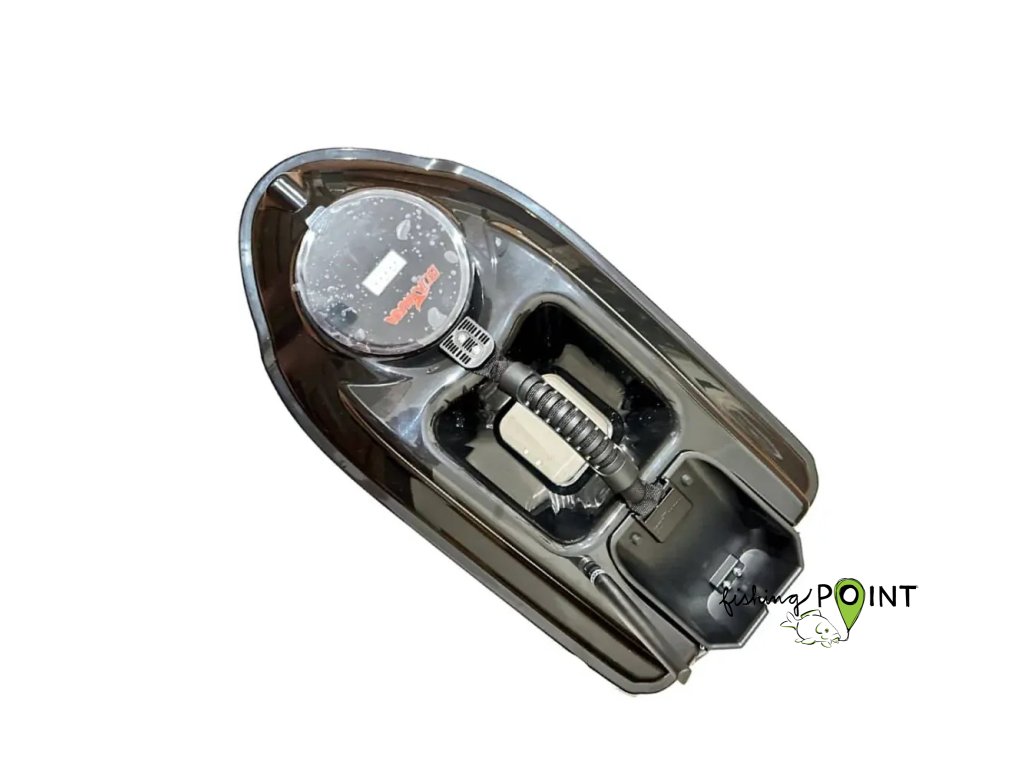 Návnadové komoryActor má uprostřed lodi velké přihrádky, do kterých se vejde přibližně 1000g suché návnady. Zadní přihrádka pojme 500 g. Stiskneme uvolňovací tlačítko na dálkovém ovladači a klapka se otevře, v případě potřeby současně uvolníme vlasec a návnadu.
