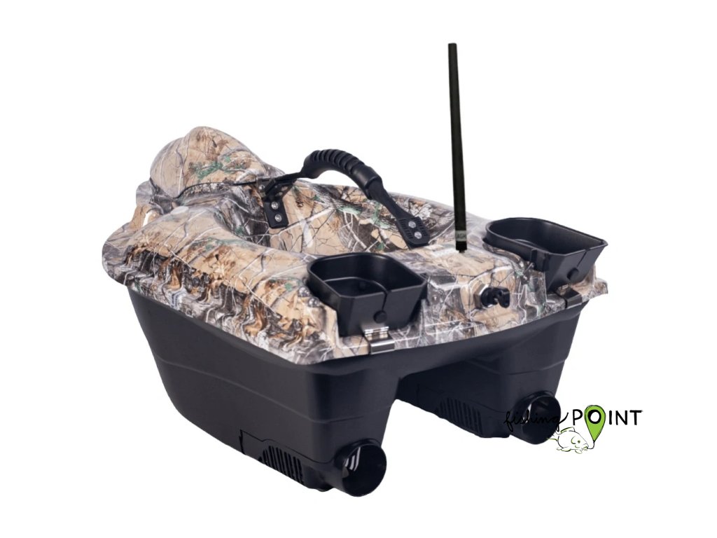 Technická data- Délka: 66,7 cm– šířka: 40,6 cm- výška: 28,1 cm- Hmotnost: cca 4,9 kg (bez návnady)– Baterie: Li-ion 7,4V 20 Ah- Doba nabíjení: až 10 hodin- Doba plavání: cca 2,5 hodiny– Rychlost: max. 80 m/m-4 nezávisle otevíratelné komory na návnady– 28 bodů GPS, ke kterým loď automaticky naviguje-Echosoner s 3,5" barevným displejem a indikátorem ryb v lovném místě a hloubky ryb– Poloměr otáčení: cca 1 m– RC systém: 2,4 GHz; 10 mW- Dosah: až 500 m– Kapacita návnadových komor: max. 4 kg suché návnadyFunkce dálkového ovládání– Přední a zadní, levá a pravá- 2 rychlostní stupně- Kontrola- Dvě hlavní komory na návnady uvnitř (každá se otevírá samostatně)– Dvě zadní komory na návnady (každá se otevírá samostatně)– Elektromagnetický držák háčku na zadní straně člunu pro odstranění návnady– LED světla vpředu a vzadu na lodi se směrovkou vzadu– GPS s možností naprogramování 28 návnadových bodů, ke kterým loď automaticky pluje