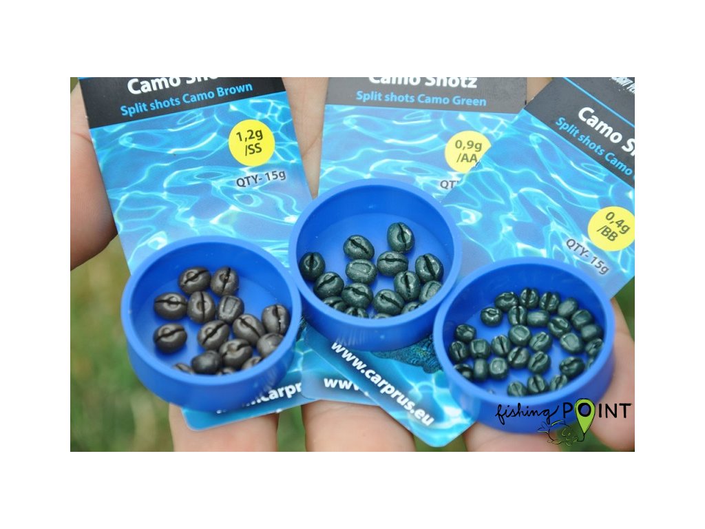 Camo Shotz jsou nové luxusní zátěžové broky z dílny společnosti Carp´R´Us s širokou škálou využití. Jednoduše je nacvakněte na návazcový materiál a dovažte vaši plovoucí nástrahu nebo použijte jako protiváhu pro lepší stočení háčku. Camo Shotz z použitého návazce též snadno odstraníte a můžete je okamžitě použít znovu! Dostupné ve dvou barevných variantách – camo zelené a camo hnědé pro dokonalé splynutí se dnem. Nabízíme v gramážích 0,4g, 0,9g a 1,2g.Doplňkové parametry