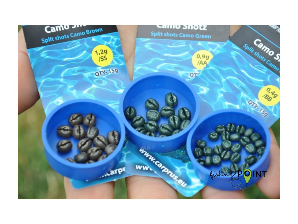 Camo Shotz jsou nové luxusní zátěžové broky z dílny společnosti Carp´R´Us s širokou škálou využití. Jednoduše je nacvakněte na návazcový materiál a dovažte vaši plovoucí nástrahu nebo použijte jako protiváhu pro lepší stočení háčku. Camo Shotz z použitého návazce též snadno odstraníte a můžete je okamžitě použít znovu! Dostupné ve dvou barevných variantách – camo zelené a camo hnědé pro dokonalé splynutí se dnem. Nabízíme v gramážích 0,4g, 0,9g a 1,2g.Doplňkové parametry