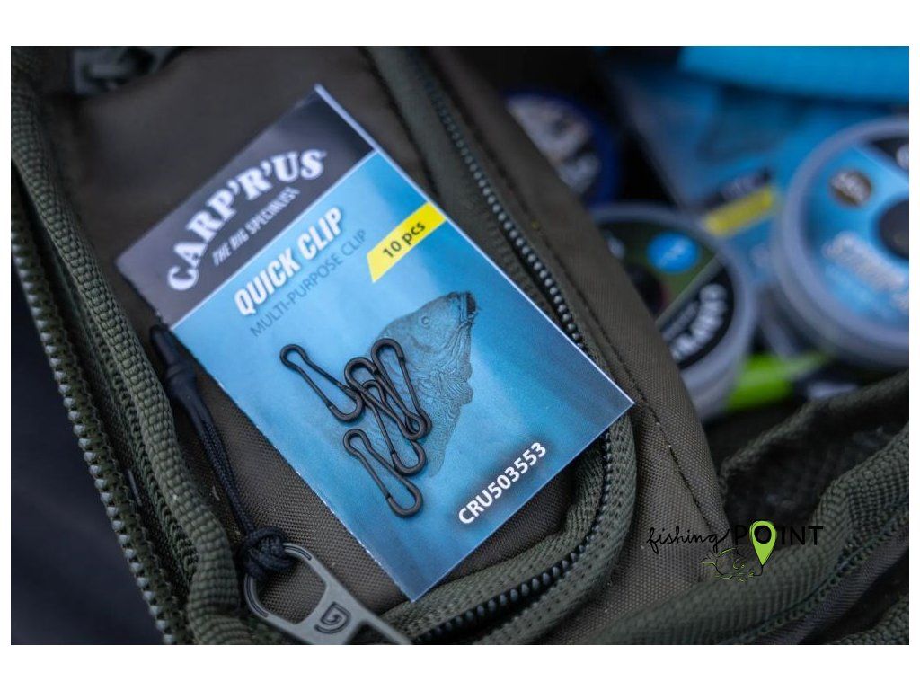 Carp’R’Us Quick Clip je pevná víceúčelová karabina, která umožňuje velmi rychlou výměnu olov nebo návazců přímo u vody. Díky jednoduchému systému zapínání můžete montáž upravit během několika sekund bez složité manipulace.
