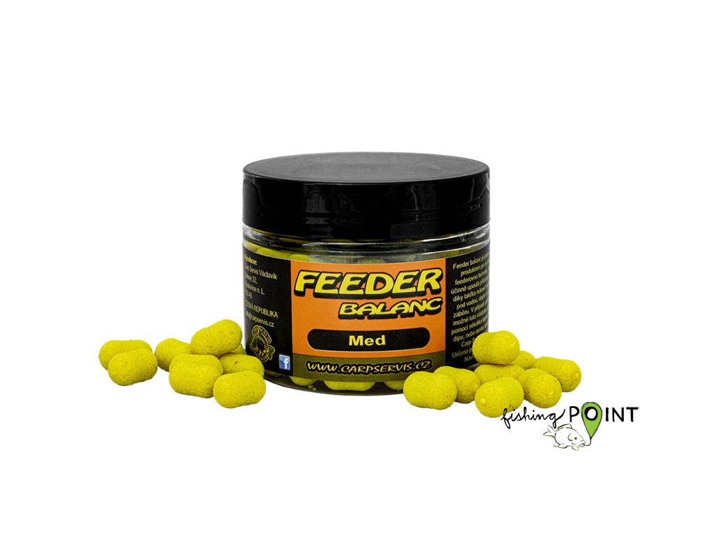 Feeder balanc je nadlehčená (neutrální - vyvážená) silně aromatická nástraha ve výrazných barvách. Je určená pro feeder nebo lehkou kaprařinu. Nutno nastražit pomocí vlasové metody nebo silikonových kroužků. Feeder balanc je jedinečným produktem pro rychlou feederovou techniku. Velmi účinně upoutá přítomné ryby a díky takřka nulové hmotnosti pod vodou dojde rychle k záběru. V případě potřeby je možné tuto nástrahu dipovat pomocí několika kapek feeder dipu nebo aroma speciálu od Carp Servis Václavík.