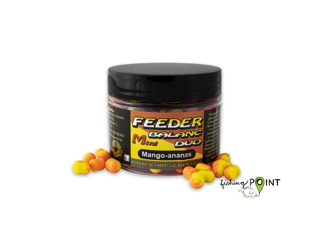 Feeder balanc je nadlehčená (neutrální - vyvážená) silně aromatická nástraha ve výrazných barvách. Je určená pro feeder nebo lehkou kaprařinu. Nutno nastražit pomocí vlasové metody nebo silikonových kroužků. Feeder balanc je jedinečným produktem pro rychlou feederovou techniku. Velmi účinně upoutá přítomné ryby a díky takřka nulové hmotnosti pod vodou dojde rychle k záběru. V případě potřeby je možné tuto nástrahu dipovat pomocí několika kapek feeder dipu nebo aroma speciálu od Carp Servis Václavík.