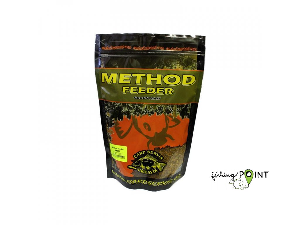Method feeder je speciálně navlhčená vnadící směs k lovu kaprovitých ryb. Je složena z širokého spektra tepelně upravených surovin, které jsou zárukou vysoké atraktivity. Dále obsahuje aromatické látky s ověřenou účinností a velmi přesvědčivá ochucovadla na přírodním základu. Tuto směs lze snadno lisovat do method feederových či tvarovat do klasických krmítek. Lze touto směsí vnadit i pomocí samostatných koulí. A to ručně nebo prakem.