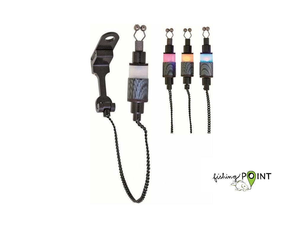 U indikátoru lze kombinovat dvě 8g zátěže, které mohou být umístěny v horní nebo dolní části, anebo je možné chytat bez zátěže. Indikátor je vybaven stmívacím čidlem, které v případě zhoršené viditelnosti rozsvítí světlo automaticky. Je možné chytat s bateriemi i bez nich. Vzdálenost kuliček pro uchycení vlasce se nastavuje maticí v horní části indikátoru. Vzdálenost se nastavuje podle síly vlasce. Velikost svítící plochy lze upravit posunutím převlečného šedého kroužku. Směrem nahoru na minimální a dolů na maximální otevření. Baterie (LR44) se umísťují pod kryt za sebou.UPOZORNĚNÍ: Baterie jsou zkušební a záruka se na ně tedy nevztahuje. V případě, že nebudete indikátor používat, baterie vyjměte.Černý řetízek je dlouhý 21 cm.