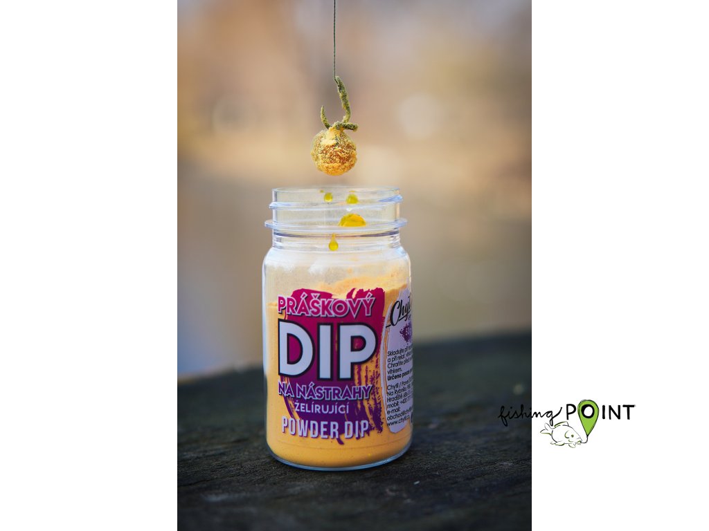 Náš TIP: Vezměte si tekutý dip, nástrahu a práškový dip. Nástrahu namočte do tekutého dipu, následně obalte práškovým, poté znovu do tekutého a znovu do práškového želé. Nechte pár vteřin oschnout a můžete nahazovat. Získáte tak velmi atraktivní, měkké barevné sousto, které ryby rozhodně nenechá v klidu!