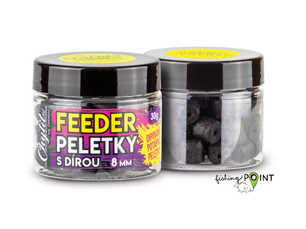 Chytací pelety 8 mm - silně dipované pelety s dírou, perfektní nástraha na method feeder.Chytací pelety 8 mm - silně dipované pelety s dírou. Na pelety skvěle reagují kaprovité ryby, jeseteři, cejni, parmy, plotice, podoustve, karasi atd. Doba rozpadu se pohybuje kolem 1 hodiny. Perfektní nástraha na method feeder. Tento produkt je "pokračovatelem" našich tradičních chytacích pelet v balení 250 g. Nový menší průměr 8 mm využijí hlavně milovníci chytání na feeder.