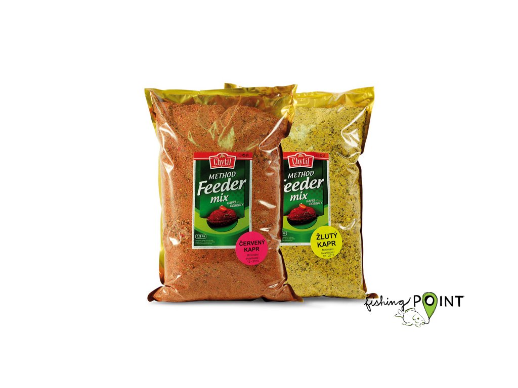 Method Feeder Mix Lov na "Method Feeder" je velice populární, proto jsme pro Vás připravili tuto řadu krmení. Krmení má hrubou strukturu, výraznou vůni a složení směsi je pro rybu maximálně pestré a atraktivní. Balení : sáček 1,6 Kg Druhy : - Žlutý kapr = intenzivní sladká vůně, výrazná žlutá barva, celoroční použití - Červený kapr = výrazná ovocná vůně, sytě červené zbarvení, celoroční použití ( skvělý také ve velmi studené vodě) - Říční kapr = nádech rybiny, mleté i celé peletky, vyšší lepivost pro postupné vyplavování v proudu - Chilli kapr = intenzivní kořeněná vůně, ostrá a pikantní chuť, vynikající ve studené vodě a na řekách ! - Tmavý kapr - Halibut = pronikavá vůně mletých halibut pelet, skvělý do letních měsícůDoplňkové parametry