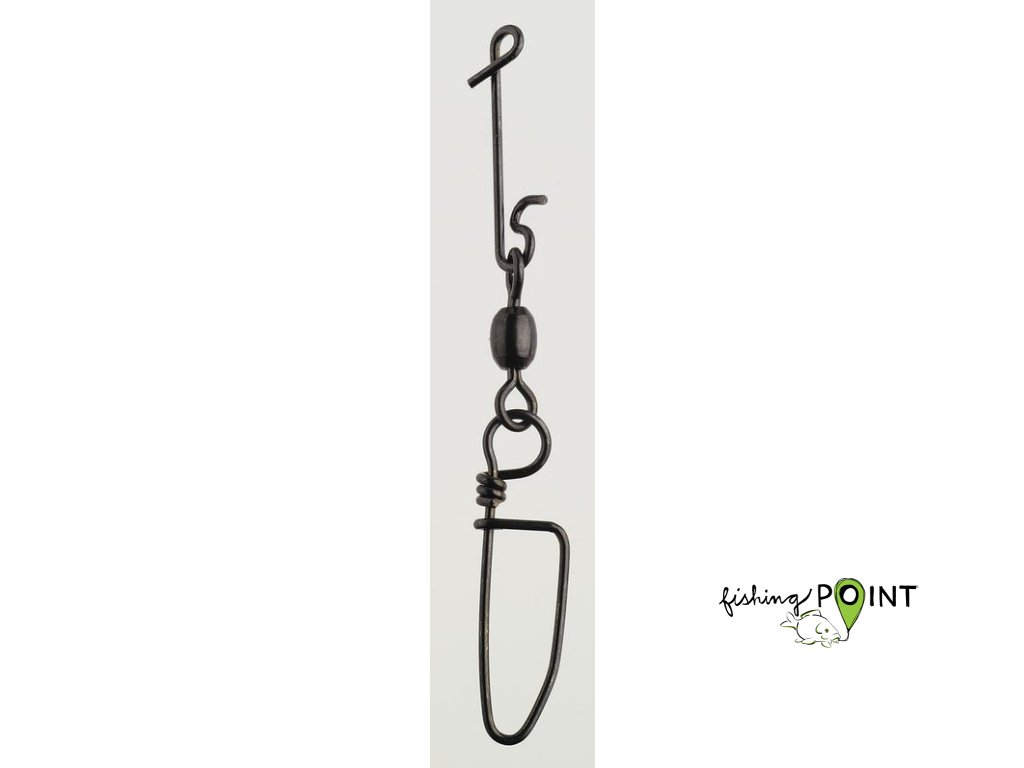 S karabinkou na pletené šňůry. Velmi rychlé připojení mezi šňůrou a obrtlíkem bez ztráty pevnosti a síly.Nerezocelový.