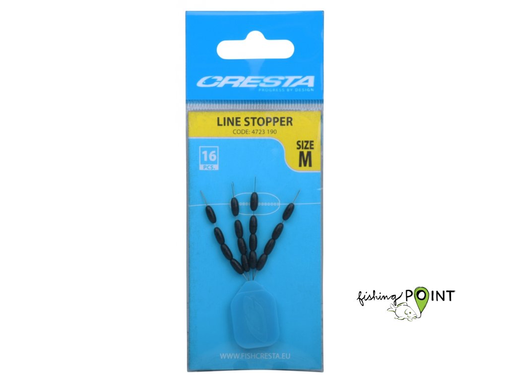 CRESTA zarážky na vlasec lze použít na všechny druhy montáží co se týče feederu, plavačkového rybolovu a dokonce i na biče. Formují perfektní zarážku pro ochranu uzlů před krmítky či jinými zátěžemi. Jsou také velmi šikovné pro ochranu wagglerů. Cresta zarážky vlasce nabízí perfektní přilnavost a jsou dodávány v nerušivé černé barvě ve velikostech střední ( M ) a velké ( L ). Model: Large Rozměry: 3x7mm Počet zarážek: 12ksDoplňkové parametry