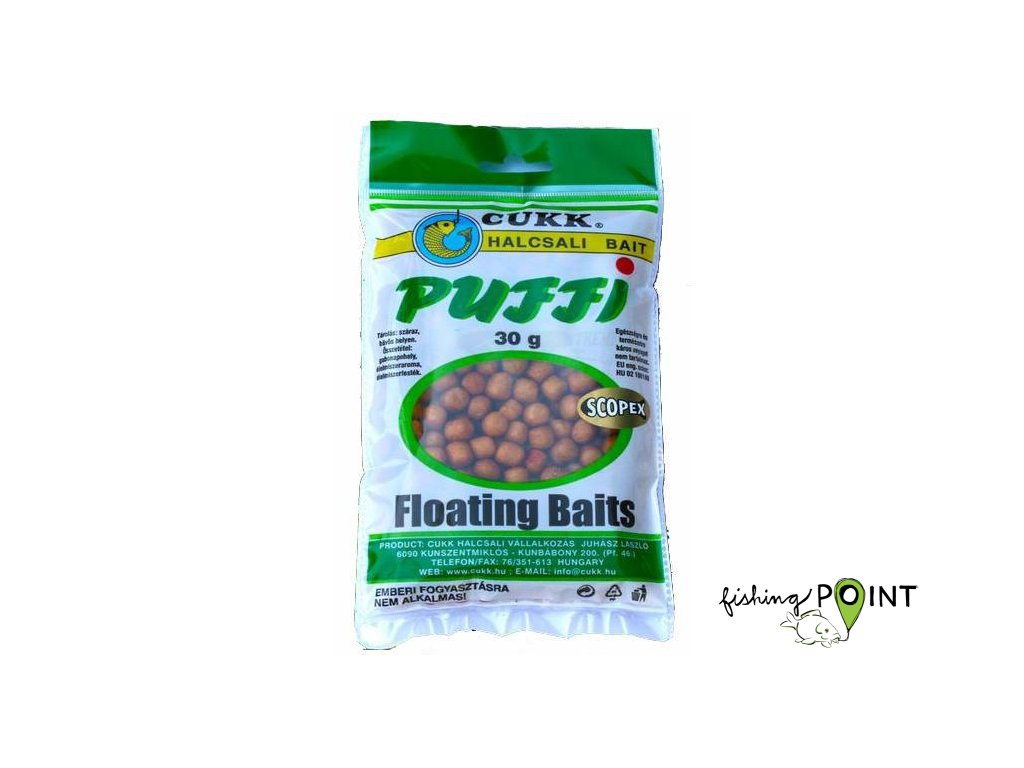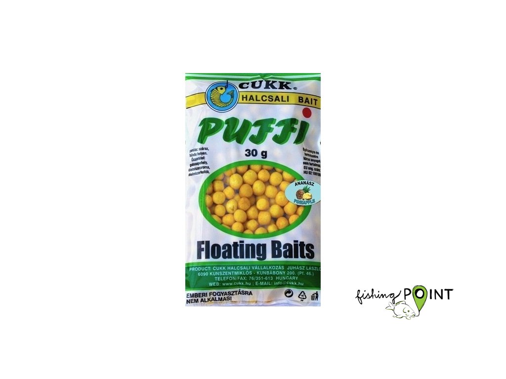 Tato návnada je kompaktní a velmi lehká, takže patří k nejúspěšnějším hlavně během celého roku. Pokud je používán malý háček, tato foukaná návnada je schopna plavat, dokonce i tehdy, je-li mimo ní na háčku napíchnut červ nebo zrno kukuřice. Umožňuje lovení klasickým napíchnutím na háček nebo i mimo háček na vlasci. Originál maďarská pufovaná nástraha. Mimořádně úspěšná nástraha na háček. Nezapadne do bahna, neskrývá se mezi rostlinami a oblázky. Obsahuje jen přirozené materiály. Puffi-jsou vyrobeny z pšeničného granulátu-odtud používaný název chlebovky Klasická nástraha která by neměla chybět v každé výbavě. Balení : 30 g