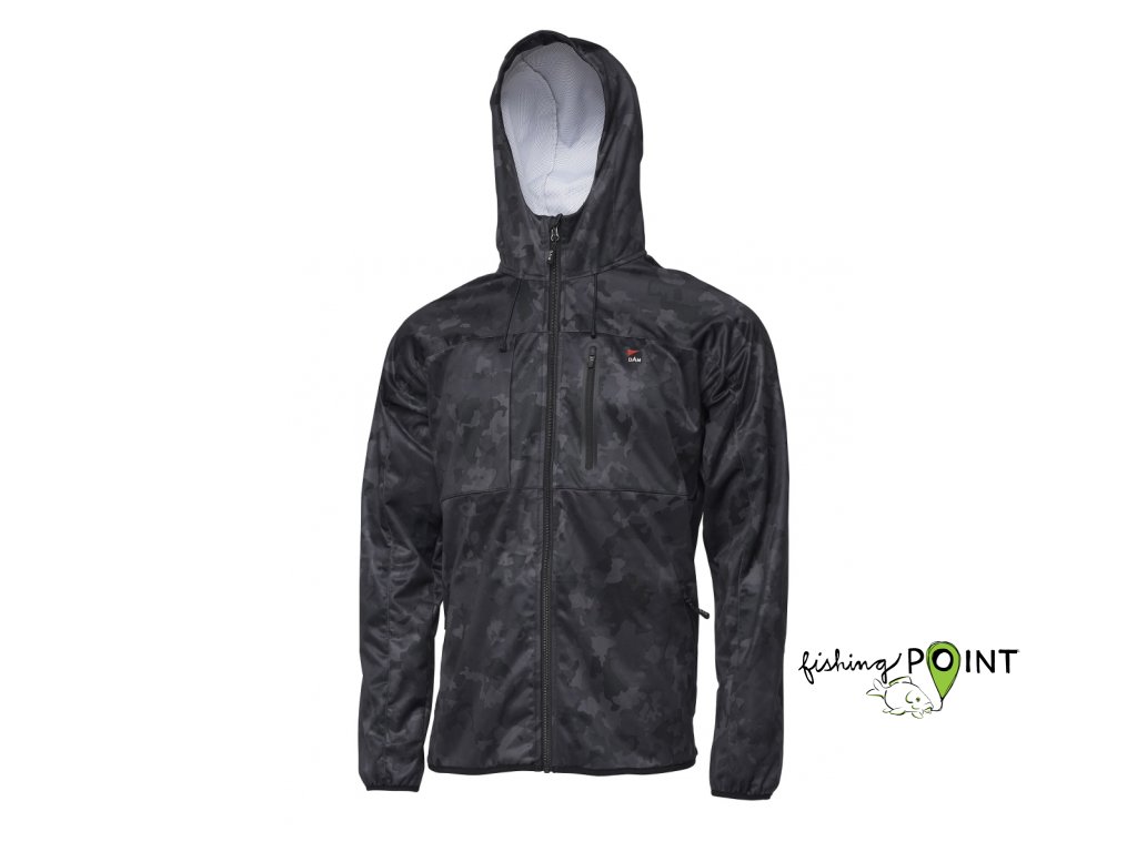 Měkký elastický materiál (polyester) se vzorem CamoVision Náprsní kapsa na zip Dvě přední kapsy na zip Elastické manžety a pas Logo DAM na hrudiDoplňkové parametry