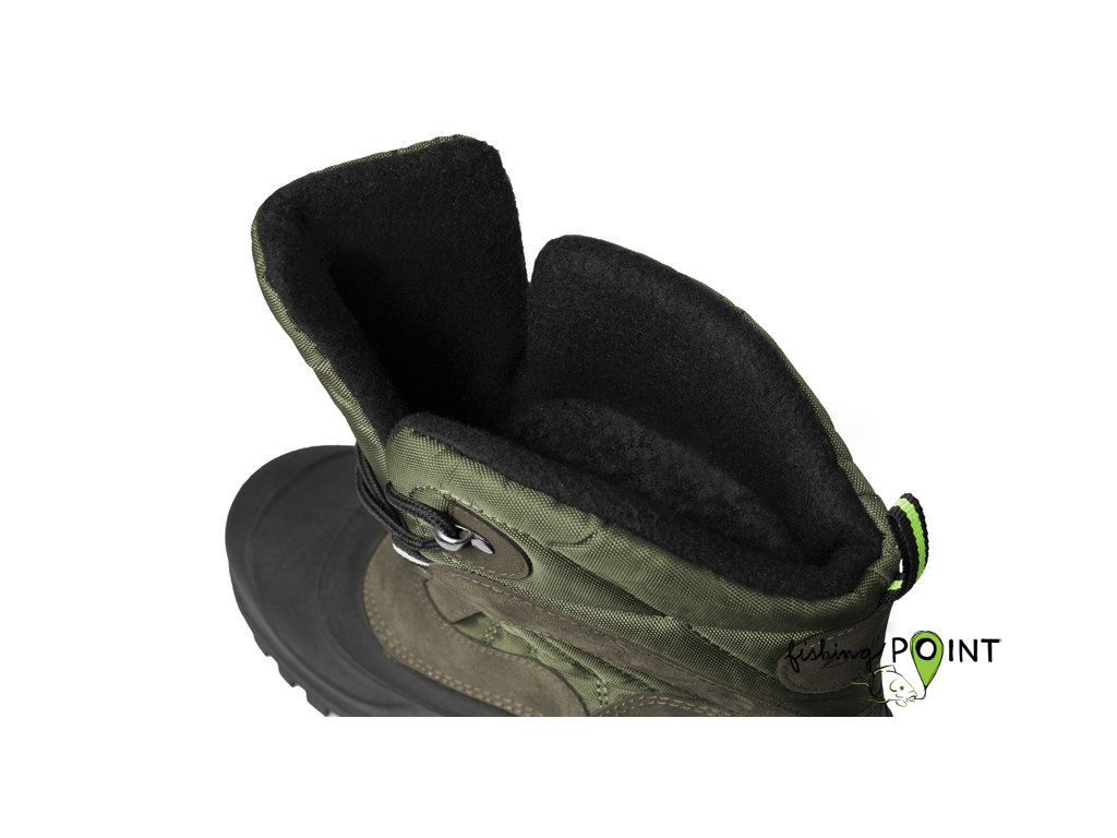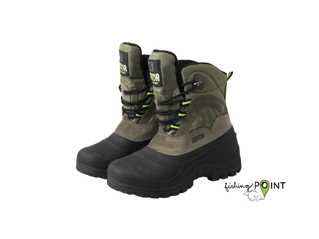 Boty Delphin GATOR jsou určeny na extrémní výpravy zejména v chladnějších obdobích roku. Zvýšený gumový lem podrážky sahá až do výšky kotníků, to znamená, že chůze v loužích, rozbředlém sněhu a blátě není pro GATOR problém. Tato pryžová část se navíc velmi dobře čistí. V zadní části gumové části boty se nachází výstupek, díky kterému si botu bez problémů zujete. Svršek boty je tvořen kombinací odolné nylonové látky a umělé kůže. Tyto materiály dobře odolávají nepřízni počasí a jednoduše se v případě potřeby impregnují. Jazyk boty je přišitý až do výšky 17cm, to znamená, že krátkodobě se můžete pohybovat v takto hlubokých vlhkých oblastech. Šněrování je řešeno přes textilní očka, na vrchu šněrování se nachází jedno kovové oko. Vnitřek boty je tvořen příjemným mikrofleecovým materiálem. O tepelné pohodlí se postará vrstva umělého mikrovlákna mezi vnější a vnitřní vrstvou. Černo-zelenou kombinaci materiálů ocení nejen rybáři, ale i myslivci, turisté a všichni ostatní milovníci přírody. I přes svou mohutnost jsou boty velmi lehké, což jistě přijde vhod při dlouhodobější chůzi. Například obě boty velikosti 43 váží pouze 1200g.Doplňkové parametry