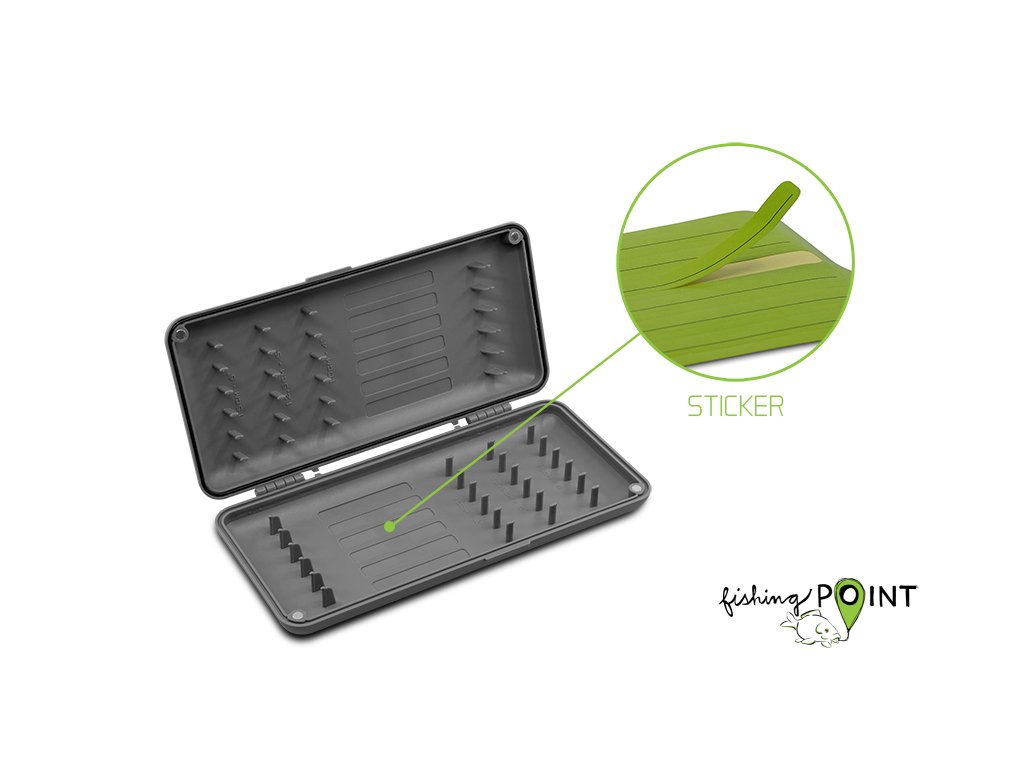Delphin HardBOX REAXE je praktická pomůcka pro uložení hotových method feederových návazců, kterou ocení každý rybář lovící na tuto stále více populárnější metodu lovu. Plochý tvar boxu a praktické rozměry šetří místo ve vašem batohu či tašce. Pevný plast boxu a robustní panty zaručují dlouhou životnost. Kontaktní plochy jsou opatřeny pryžovým těsněním, což zaručuje dokonalé těsnění a zamezuje přístupu vlhkosti z vnějšího prostředí. Box obsahuje set dvanácti plastových výstupků pro uložení návazců v délkách 10, 12,5 a 15cm. Otevírání a zavírání boxu je realizováno pomocí magnetů. Box navíc obsahuje sadu nálepek, díky nimž si můžete přizpůsobit vzhled boxu do feederové série REAXE z dílny Delphin.Doplňkové parametry