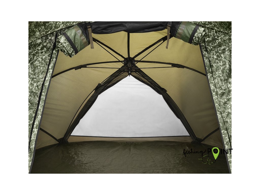 Brolly RAMBLER nabízí díky svým rozměrům a možnosti rychlého a jednoduchého rozložení mimořádně praktické řešení zejména pro kratší – několika denní vycházky k vodě. Díky velmi stabilní konstrukci, doplněné o dvě tzv. bouřkové tyče, poskytuje dokonalou ochranu před nepříznivým počasím a silným větrem. K tomu samozřejmě přispívá i osvědčený materiál pláště s důkladně podlepenými švy. Takové provedení zaručuje odolnost i při vydatných úhrnech srážek bez možnosti zatečení do vnitřního prostoru. Brolly je primárně navrženo na jedno lehátko, přičemž uvnitř zůstane dostatečný prostor například na křeslo, taškovinu, či jinou výbavu potřebnou pro pohodlný pobyt u vody. Výhodou je i kšilt nad vstupem, který zajistí odtékání vody při dešti. Velká moskytiérová okna na předním panelu a obrovské okno vzadu se postarají o větrání a vynikající cirkulaci vzduchu, čímž bude pobyt v tomto brolly příjemným i během teplejších letních dnů. V případě nepříznivých podmínek lze všechna okna snadno uzavřít. Přední panel tvoří vizuálně velmi zajímavý prvek, který potěší zejména příznivce C2G kamufláže a dodává celému brolly punc originality. Kromě toho je ho možné v případě potřeby kompletně odepnout a RAMBLER využívat jako jednoduchý přístřešek s deštníkovou konstrukcí během stabilního počasí či krátkých vycházek k vodě. Samozřejmostí jsou také dva úchyty FixROD, sloužící k opření a zafixování prutů. V balení je brolly dodáváno spolu se základní podlahou, kterou lze po obvodu ke stěnám upnout pomocí suchých zipů. Za účelem pohodlného transportu dostanete také praktické přenosné pouzdro s pevnými rukojeťmi. Technické parametry: Vnějšek. rozměr: 260x180cm Výška: 140cm Transp. rozměry: 150x20x20cm Hmotnost: 8kgDoplňkové parametry