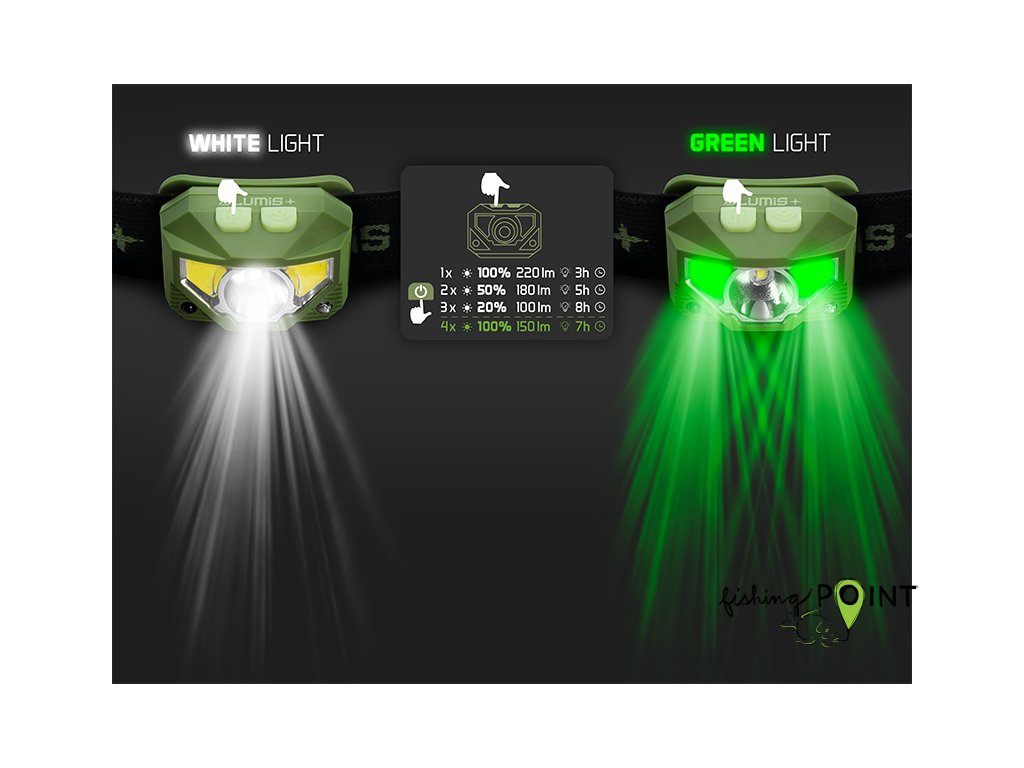 Delphin LUMIS rozšiřuje nabídku čelových lamp o velmi lehký a praktický model s příznivou pořizovací cenou. Díky výkonu 3 W a svítivosti 220 lm dokonale poslouží během nočních rybářských výprav, kempování nebo večerních procházkách v přírodě. O dostatečnou výdrž se postará vestavěná nabíjecí baterie s kapacitou 1000 mAh.Čelová lampa je vybavena dvěma LED diodami, které umožňují přepínání mezi klasickým bílým a zeleným světlem. Režimy lze měnit pomocí mačkání spínacího tlačítka. Bílé světlo si tak může nastavit na tři různé intenzity svítivosti – 100 % (220 lm) s výdrží baterie 3 hodiny, 50 % (180 lm) vydrží svítit 5 hodin a 20 % (100 lm), s výdrží až 8 hodin. Čtvrtým stisknutím se spustí režim se zeleným světlem o intenzitě 100 % (150 lm), které poskytne světlo po dobu 7 hodin.Díky režimu zeleného světla získáváte velkou výhodu při zdolávání ryb - na rozdíl od bílého světla ryby na něj reagují minimálně a zároveň nepřitahuje hmyz, který bývá v letních měsících velmi otravný.Mezi další přednosti modelu Delphin LUMIS patří pohybový senzor, díky kterému můžete čelovou lampu zapnout nebo vypnout pouhým mávnutím ruky.Uvnitř čelové lampy se nachází Li-ion baterie o kapacitě 1000 mAh, která se nabíjí pomocí USB-C vstupu. Aktuální stav baterie si můžete snadno zkontrolovat díky LED indikátoru, který se nachází na boku těla. Plné nabití trvá pouze 2 hodiny.Pohybový kloub, na kterém je čelová lampa osazena, umožňuje nastavení úhlu sklonu podle aktuálních podmínek. Elastický, délkově nastavitelný popruh zajišťuje pohodlné nošení pro každéhoTechnické parametry:Zdroj světla: LEDVýkon: 3W, 220lmBaterie: 1000 mAh, 3,7 VRozměry: 6x4,2x3,2Hmotnost: 72gNabíjení: USB-CDoplňkové parametry