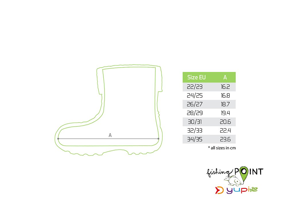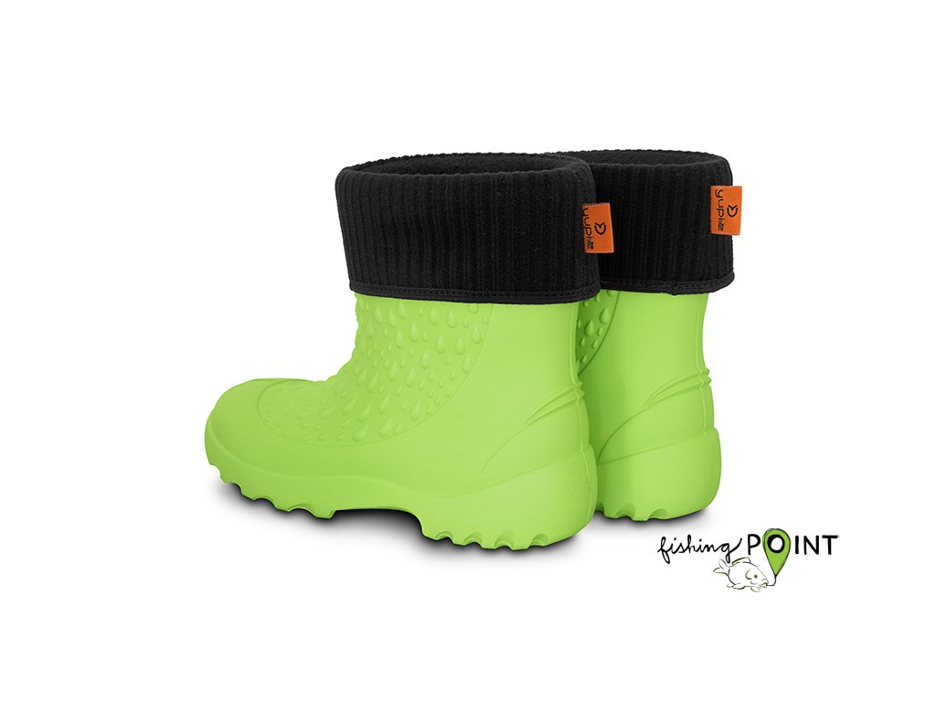 Zateplené nepromokavé holínky, speciálně navržené pro ty nejmenší rybáře a rybářky, kteří je budou s radostí nosit při vašich společných vycházkách k vodě, ale i během běžných dnů. Hřejivá vložka holínek je vyjímatelná, takže jsou vhodné pro všechna čtyři roční období. Jsou vyrobeny z EVA pěny, takže jsou dostatečně poddajné a flexibilní. V horní části se nacházejí po obou stranách výřezy, pomocí kterých lze snáze natáhnout holínku na chodidlo dítěte. Podrážka má výrazný grip, který snižuje riziko uklouznutí na mokrém nebo nerovném terénu. Holínky jsou vyhotoveny v univerzální, výrazné zelené barvě, čímž jsou vhodné pro chlapce i dívky a nabízíme je v široké škále velikostí.Doplňkové parametry