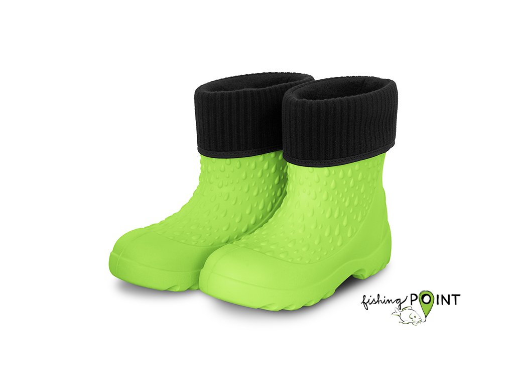Zateplené nepromokavé holínky, speciálně navržené pro ty nejmenší rybáře a rybářky, kteří je budou s radostí nosit při vašich společných vycházkách k vodě, ale i během běžných dnů. Hřejivá vložka holínek je vyjímatelná, takže jsou vhodné pro všechna čtyři roční období. Jsou vyrobeny z EVA pěny, takže jsou dostatečně poddajné a flexibilní. V horní části se nacházejí po obou stranách výřezy, pomocí kterých lze snáze natáhnout holínku na chodidlo dítěte. Podrážka má výrazný grip, který snižuje riziko uklouznutí na mokrém nebo nerovném terénu. Holínky jsou vyhotoveny v univerzální, výrazné zelené barvě, čímž jsou vhodné pro chlapce i dívky a nabízíme je v široké škále velikostí.Doplňkové parametry