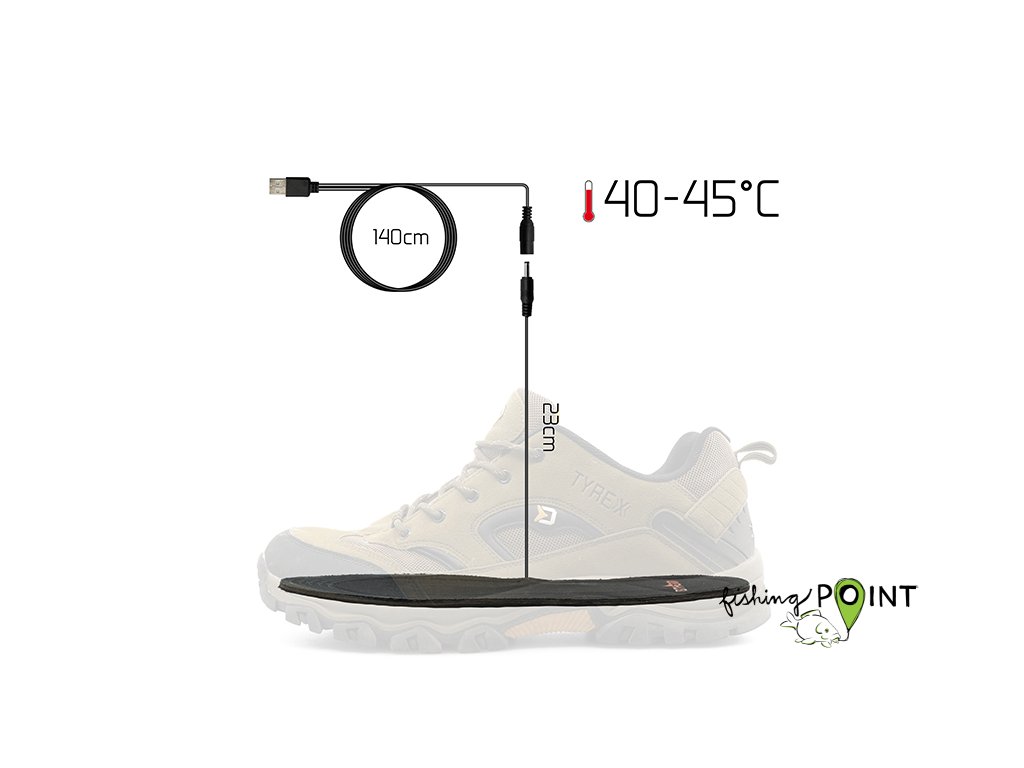 Delphin THERM jsou elektricky vyhřívané vložky do bot, díky kterým už nebudete pociťovat nepříjemný chlad na nohy ani během mrazivých dnů.Univerzální velikost 40-46 umožní použít při široké škále velikosti obuvi. Vložky po připojení pomocí USB koncovky do power banky, nebo jiného zdroje elektrické energie (nedoporučujeme připojení vložek přímo do elektrické sítě), dokáží vyhřát vnitřek vaší boty do teploty 40-45°C. To oceníte zejména během zimních dní, ať už při chůzi nebo při delším setrvání na jednom místě během lovu. K maximálnímu komfortu přispívá i příjemný měkký materiál, ze kterého jsou vyrobeny. Po odpojení od zdroje teplota vložek pomalu klesne.