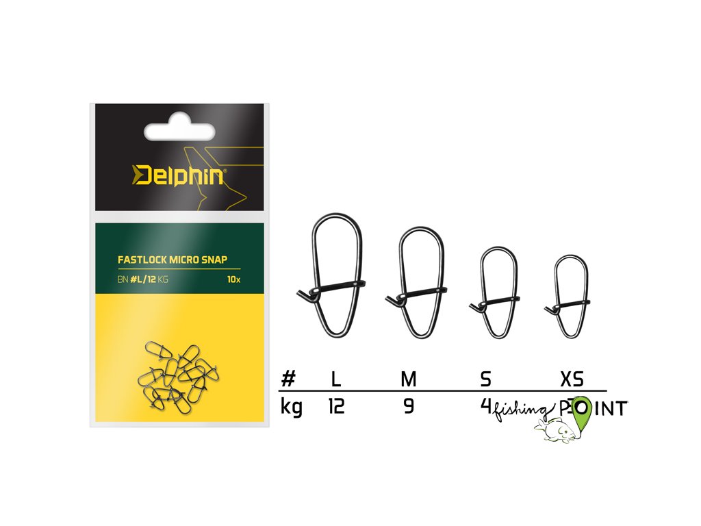 Karabinky Delphin FASTLOCK MICRO SNAP si oblíbí zejména rybáři holdující technice "Ultralight". Tento typ karabinek je velmi lehký, nepřetěžuje nástrahu a nebrání v jejím přirozeném chodu. Kromě toho se dá velmi rychle odepnout, což umožňuje okamžitou změnu nástrahy. Díky 4 velikostem a nosností si vybere každý vláčkař. V balení se nachází 10 kusů.Doplňkové parametry