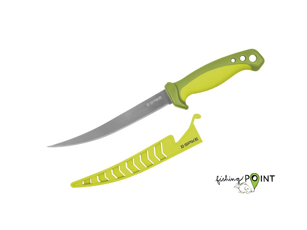 Delphin SPIKE je filetovací nůž vyznačující se výbornými vlastnostmi a velmi příznivou pořizovací cenou. Jeho ostrá čepel je vyrobena z kvalitní nerezové oceli a ideálně poslouží při zpracování masa, ale i jiných surovin potřebných pro přípravu pokrmů. Nůž disponuje ergonomicky tvarovanou rukojetí z tvrzeného ABS plastu. Celá rukojeť je navíc opatřena gumovým protiskluzovým povrchem, díky čemuž výborně sedí v každé dlani. Na konci rukojeti se nacházejí tři otvory, které vytvářejí zajímavý designový prvek, ale také mohou sloužit například k zavěšení nože. SPIKE je dodáván spolu ochranným plastovým pouzdrem na čepeli. Technické parametry: Délka nože: 29cm Délka čepele: 16,5cmDoplňkové parametry