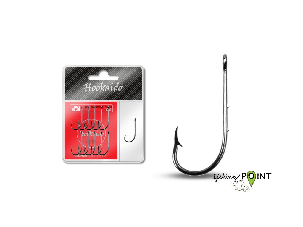 Háčky červené série Delphin HOOKAIDO jsou určeny pro každodenní rybolov. Jsou velmi odolné, ostrost a tvar neztrácejí ani po delším používání a mnoha zdolaných rybách. Vyrobené jsou jen z materiálů vysoké jakosti. Díky pestrosti tvarů a velikostí si z této série vybere každý rybář ten svůj! Asymetrické balení 10 + 1 umožňuje rybářům jednodušší výběr potřebného háčku. Delphin HKD BAIT HOLDER je, jak už z názvu vyplývá, určený na lov s nástrahou. Tou mohou být například žížaly (rousnice), maličké rybky či kousky rybího masa. Díky speciálnímu tvarování ostří velmi snadno vnikne i do velmi tvrdé rybí tlamy. Výborně drží a díky protihrotem na ramínku se nástraha nesklouzává. Technické parametry: - s očkem - s protihrotem - 2 protihroty na ramínku - osově zakřivený - průřez: kulatý
