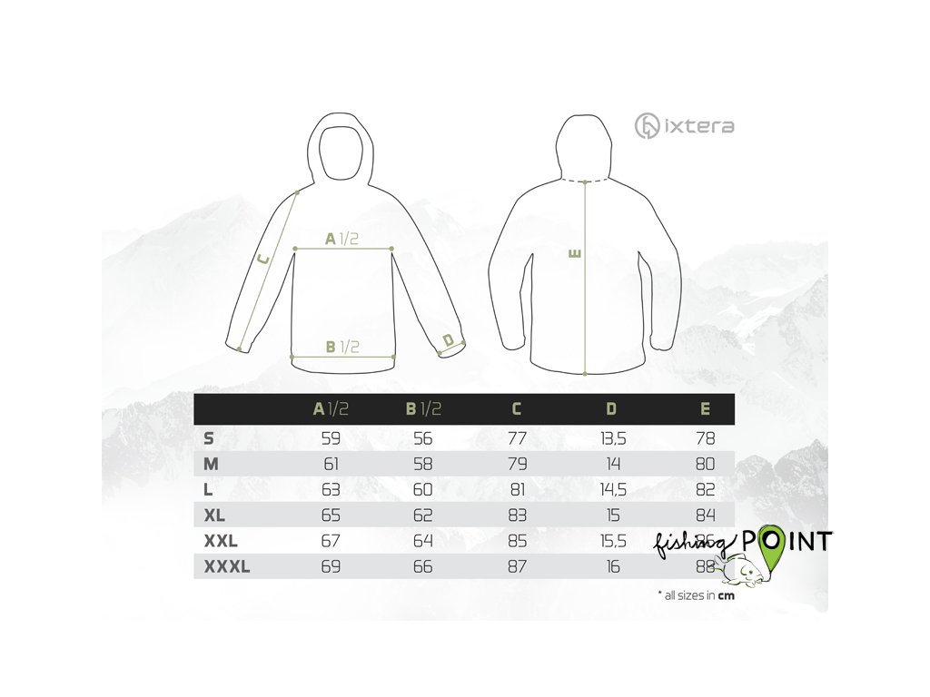 Značka IXTERA je zúročením našich mnohaletých zkušeností s vývojem a testováním produktů určených pro pobyt v přírodě. Drtivá většina našich produktů využívá nejmodernějších technologií, procesů a funkčních materiálů tak, abychom vám zaručili maximální komfort v jakýchkoli podmínkách, vždy a všude. Otevíracím modelem značky IXTERA je špičková izotermická bunda, která přináší maximální tepelný komfort a pohodlí i v případě, že teploměr ukazuje hluboko pod bodem mrazu. Vnitřní vložka efektivně vede tělesné teplo z míst s vyšší teplotou do chladnějších oblastí, čímž udržuje konstantní teplotu po celém vnitřním povrchu bundy. Izotermická konstrukce spolehlivě brání úniku tepla a zároveň izoluje před pronikáním chladu, větru či vlhkosti. Výsledkem je stabilní tepelný komfort, na který se můžete spolehnout i během dlouhých zasněžených dní u vody nebo v přírodě. Kromě vynikajících termoregulačních vlastností bunda disponuje také antibakteriálním účinkem, díky kterému omezuje vznik pachů a udržuje pocit svěžesti i při dlouhodobém nošení. Povrchová vrstva je navržena tak, aby spolehlivě odolávala sněhu a menším srážkám, takže vás udrží v suchu během běžných zimních přeháněk. Materiál je voděodpudivý, což znamená, že kapky stékají po povrchu a nepronikají dovnitř. Pro ještě lepší komfort a ochranu před chladem je bunda vybavena praktickými technickými prvky. Rukávy jsou zakončeny pružnou gumičkou a pásky na suchý zip, díky čemuž se dokonale přizpůsobí zápěstím a zabrání pronikání studeného vzduchu. Samozřejmostí je také kapuce, která je pro maximální ochranu před větrem a sněhem stahovatelná pomocí dvou gumiček. Spodní lem bundy lze stáhnout gumičkou z obou stran, což zvyšuje tepelnou izolaci, chrání záda a zejména kříže před větrem. Po stranách se nacházejí prostorné kapsy se zipem, které díky speciálnímu šití poskytují dostatek místa k uschování například termosky s teplým čajem. Ve vnitřní části se nachází praktická kapsa vhodná na doklady nebo jiné cennosti. Bundu lze zapnout pomocí robustního zipu, který je z vnější strany překryt lemem, čímž se ještě více zvyšuje ochrana před extrémními zimními podmínkami. Izotermická bunda Ixtera SubZERO je důkazem, že neexistuje špatné počasí – jen špatně oblečený rybář! Při praní doporučujeme použít speciální prací prostředek na funkční oblečení, prát při maximální teplotě 30 °C, neždímat, nežehlit a v případě potřeby použít impregnační přípravek, který obnoví vodoodpudivou úpravu vnějšího materiálu. Podle přiložené velikostní tabulky si prosím zkontrolujte vyhovující velikost.Doplňkové parametry