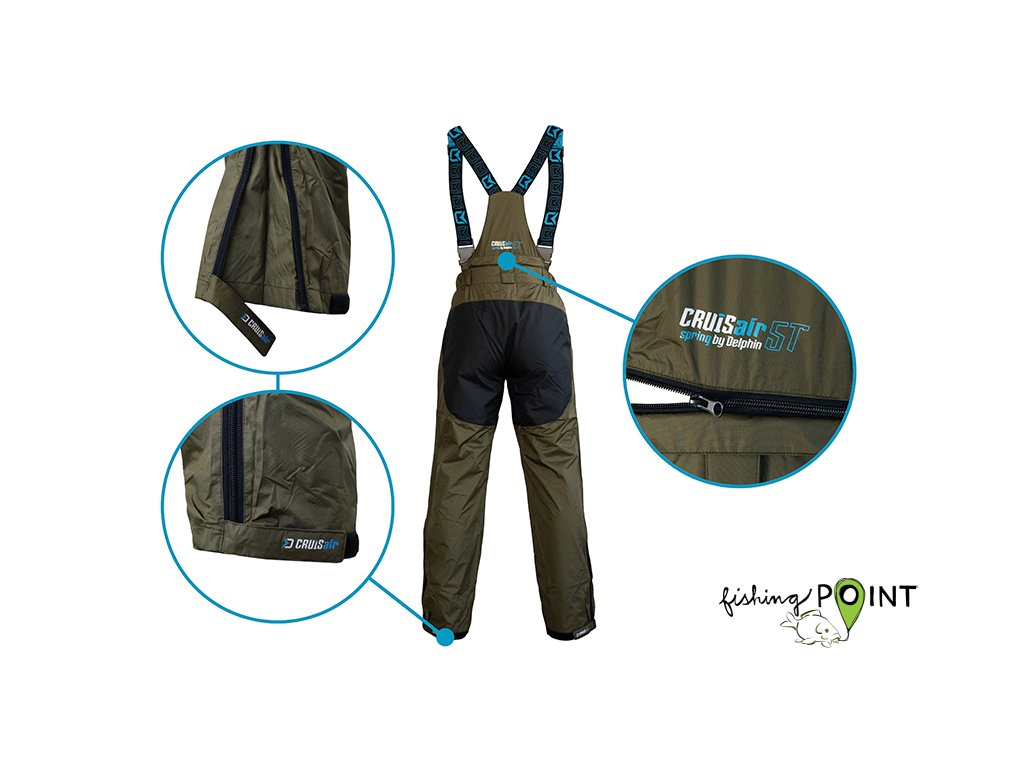 Dýchatelné svrchní oblečení nabízející excelentní ochranu vůči nepříznivým podmínkám, a to zejména dešti a větru. Delphin CruisAIR SPRING 5T je svými parametry vhodný zejména pro přechodné období jara a podzimu, kdy je počasí často nevyzpytatelné.Komplet CruisAIR SPRING 5T se skládá ze samostatně prodávané bundy a kalhot, což vám dává možnost nakombinovat si správnou velikost každého dílu. Nekompromisní kvalita použitých materiálů a odolnost vůči živlům perfektně charakterizují tento komplet. Nabízí vodní sloupec 5000mm ve spojení s paropropustností 3000g/m2/24h, díky čemuž vás nepřekvapí ani intenzivní liják, zůstanete v suchu a jen tak snadno se v něm nezpotíte.Kalhoty:Jednou z hlavních výhod kalhot je vyvýšený pas v oblasti křížů, čímž bude spodní část vašich zad dokonale chráněna. V oblasti hýždí a kolen se nachází zesílená černá látka, jejímž úkolem je ochrana před znehodnocením, těchto používáním nejvíce náchylných částí kalhot. Elastické kšandy se zapínáním na klipy zaručí, že kalhoty budou dobře sedět a nebudou vám padat. Zapínání pasu je provedeno z kvalitního zipu a 2 kovových cvoků, nechybí ani poutka po obvodu sloužící pro použití pásku. Ve spodní části lze kalhoty regulovat pomocí krytého zipu a zatahovacího pásu se suchým zipem.Při praní doporučujeme použít speciální prací prostředek na funkční oblečení, prát při max. 30°C, neždímat, nežehlit a v případě potřeby použít impregnační přípravek, který obnoví vodoodpudivou úpravu vnějšího materiálu.