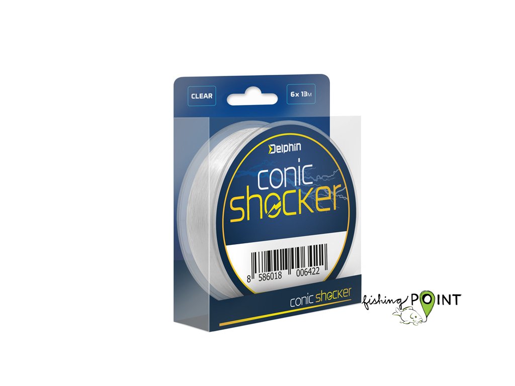 Delphin Conic SHOCKER je kónický šokový vlasec, díky kterému nahazování na velké vzdálenosti nabývá nového rozměru! Podstata kónicky zúženého vlasce spočívá v postupně se měnícím průměru, díky čemuž je možné spojit jej s kmenovým vlascem pomocí velmi malého uzlíku. Právě to je jedním z klíčových parametrů pro mnohem snazší odvíjení vlasce z cívky a pro hladký průchod očky. Na opačném konci je však dostatečně tlustý a pevný, aby bez problémů odolal překážkám pod vodní hladinou či výpadům velkých ryb. Zároveň se do prutu můžete opřít plnou parou, bez obav o odtržení koncové sestavy při krátkodobém přetížení během nahazování. Kombinace zmíněných faktorů zaručuje, že při nahazování budete schopni dopravit své montáže podstatně dále než při použití klasické „šokovky“ se stejným průměrem po celé délce. V balení na cívce se nachází navinutých 6 kusů návazců o délce 13 metrů, které jsou vždy označeny nálepkou.ąDoplňkové parametry